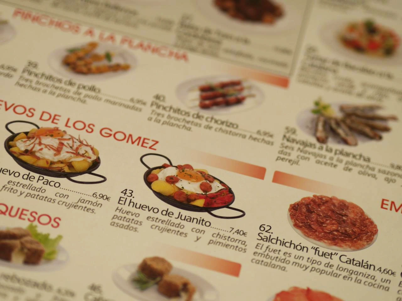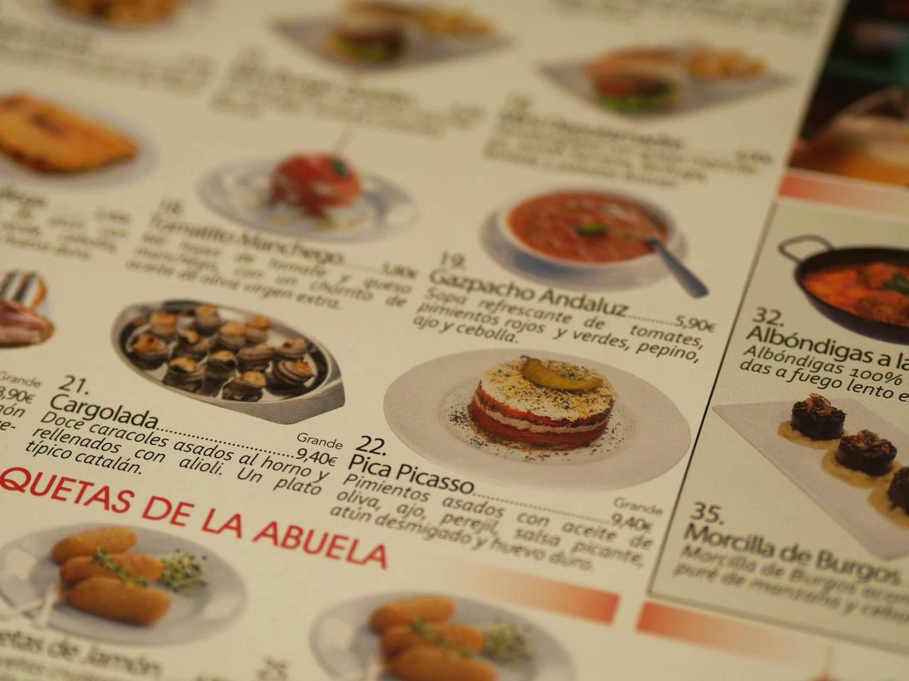 레스토랑에 들어서자 대부분의 사람들은 빠에야를 먹고 있었다. 하지만 이미 점심을 지난 시간이었고, 내 생일 저녁식사로 해산물을 배터지게 먹을 계획이었기에 우리는 타파스를 선택했다. 관광지라 그런지 한국어 메뉴판에 메뉴 하나하나 사진도 있었다.