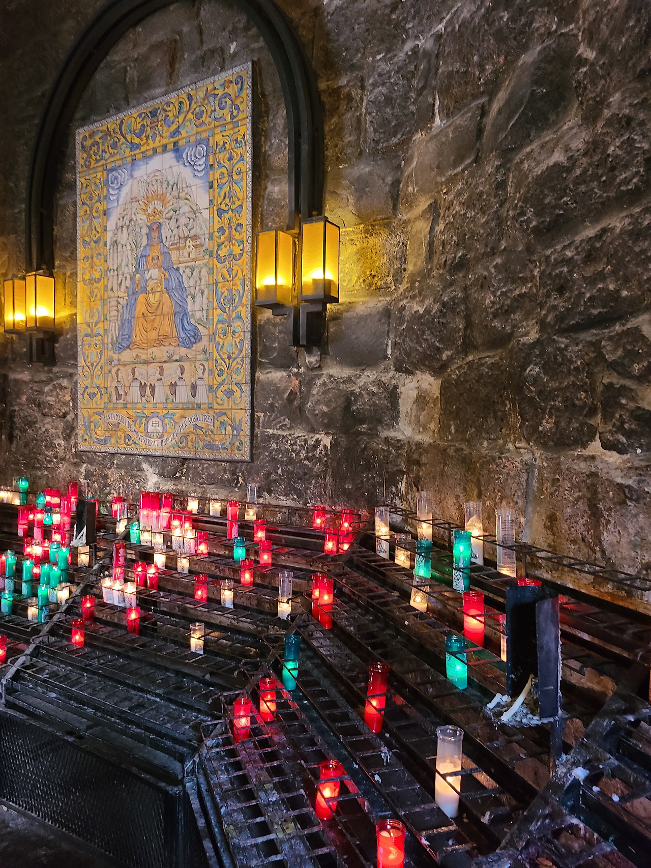 우선 몬세라트 대성당에 들어가서 내부를 본 후 이와 별개로 검은 성모상을 향해 연결된 통로를 따라가서 성모상에 손을 대고 우리의 여정을 돌보아 주십사 기도를 했다. 교종 프란치스코가 몬세라트의 검은 성모님께 봉헌한 황금 장미도 볼 수 있었다. 언제 어디서나 우리는 신의 가호를 필요로 하는 연약한 존재들이다. 다시 내려와서 자유 시간을 2시간 정도 주기에 우선 시식권을 이용해서 빵 한 조각을 받고 시식용 술을 맛보았다. 도수가 꽤 높은 것 같았다.