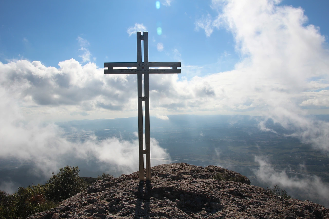 푸니쿨라를 타고 편도로 정상 가까이 우선 올라간 다음 그 주위의 다양한 방향에서 몬세라트 산의 다양한 풍광을 일람한 후에 좌측으로 방향을 꺾어 산 미겔 십자가를 향해 걸어오는데 데이터 접속이 왔다 갔다 하는 바람에 터무니없이 먼 거리로 계산되어 당황한 내가 조바심을 내면서 불안해 하다가 아내와 언쟁이 붙어 버렸다. 주저주저하면서 내려오다 보니 산 미겔 십자가로 보이는 지점이 보여서 가까이 가서 사진을 찍고 호텔에서 조식 대신 싸준 도시락을 거기서 먹었다. 도시락의 구성이 꽤 충실해서 만족감이 컸다.