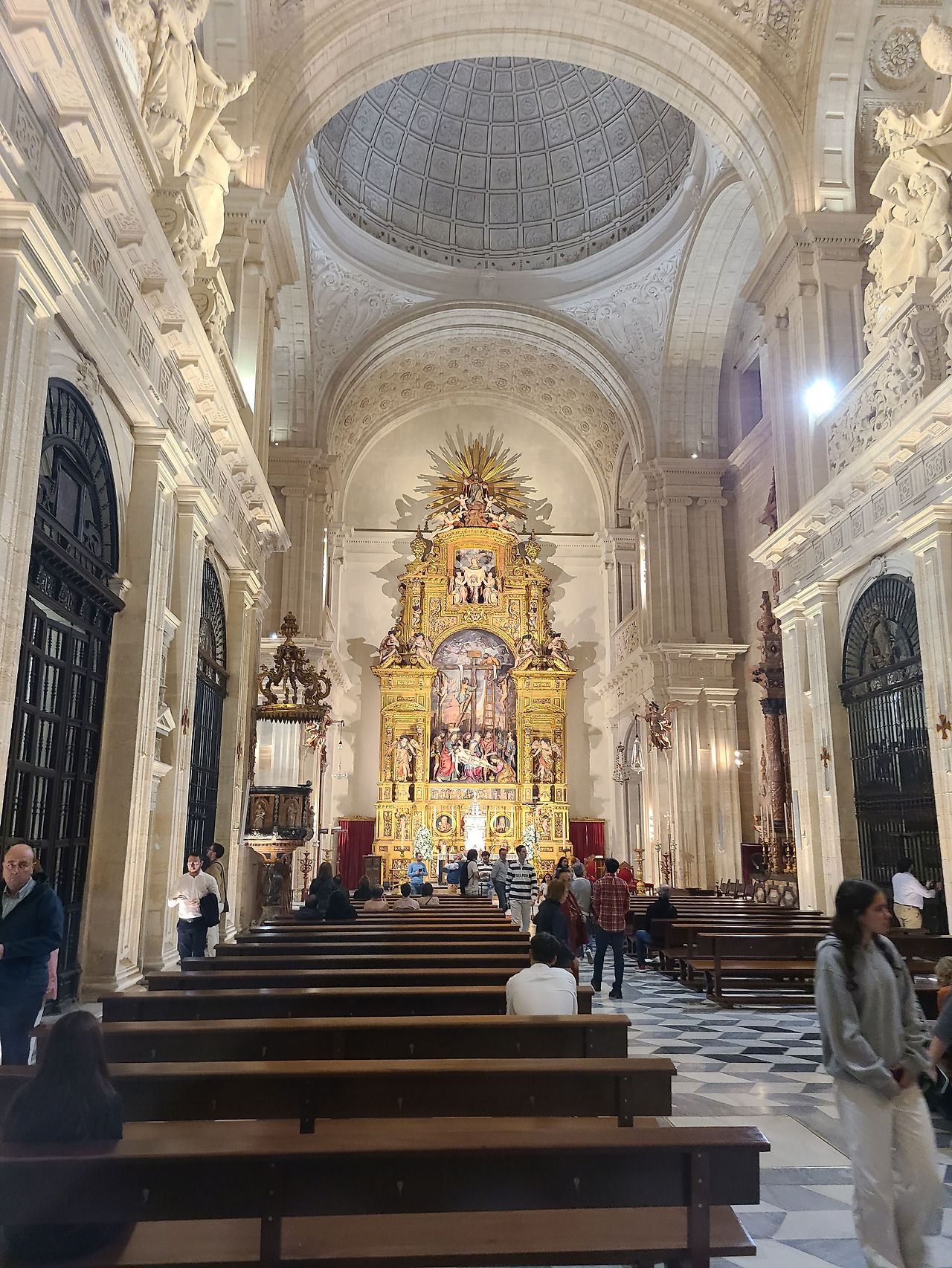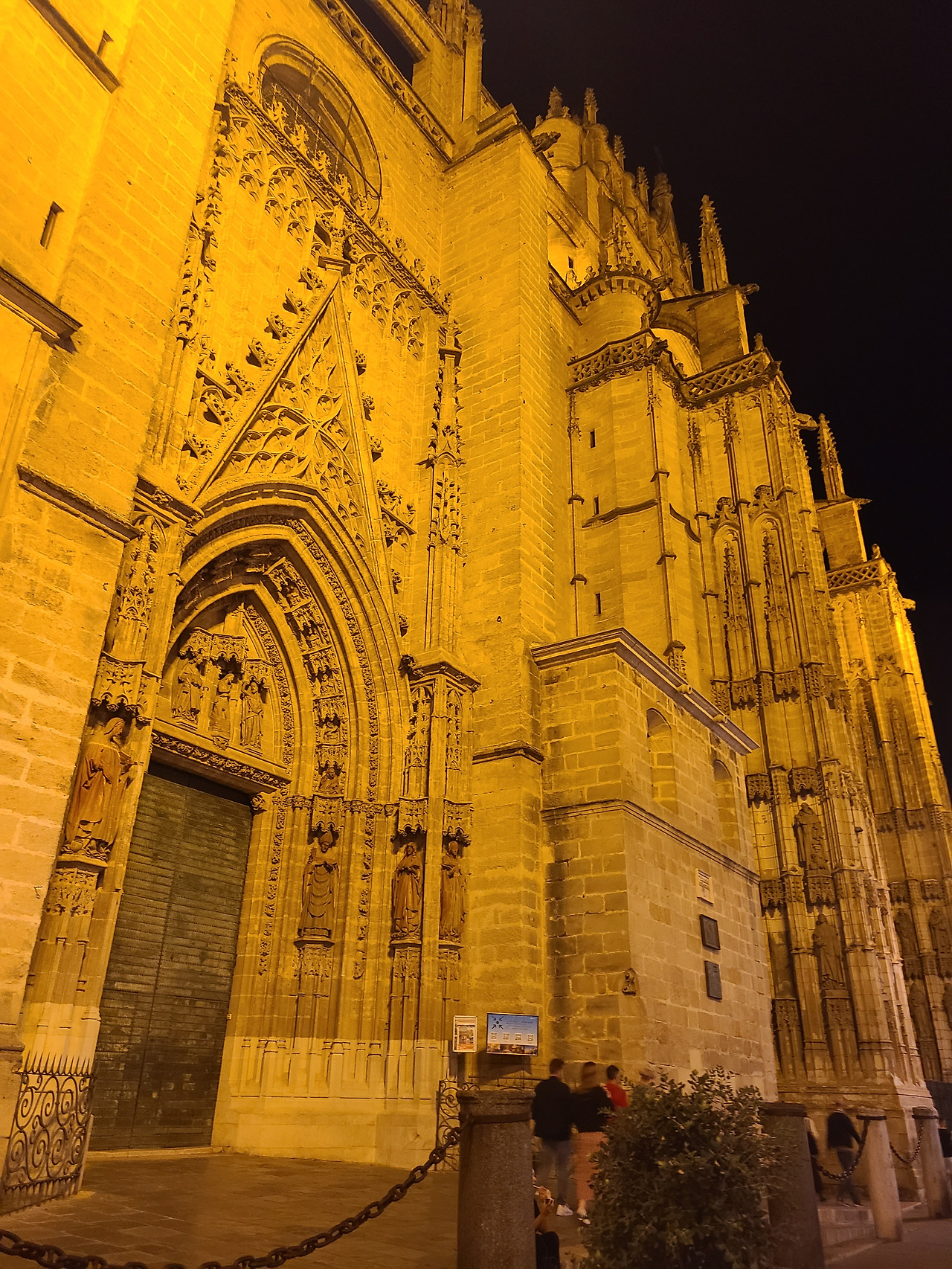 이날의 할 일이 하나 남았다. 체크인을 마치자마자 지도 앱을 작동시키니 세비야 성당의 마지막 미사가 8시에 있다. 사위는 어두워졌는데 세비야의 지리는 잘 모르고 상황은 쉽지 않아 보인다. 거리상으로는 십 몇 분이면 갈 수 있을 것 같은데 벌서 7시 30분 정도가 되었다. 부지런히 손잡고 걸어가서 세비야 대성당에는 도착했는데 미사가 열리는 소성당이 어디쯤인지 감이 잡히질 않는다. 묻고 물어서 한 바퀴 성당을 돌아가니 작은 문이 있고 사람들 몇이 안으로 들어간다. 입구에 여성 관리자가 통제를 하고 있다. 다가가니 들어갈 수 없다는 표시를 하기에 ‘미사에 참석하기를 원한다’고 하니 들어가라고 한다. 안도의 숨을 들이쉬고 들어가니 나와 같이 여행자들이 많은 것 같았다. 뒤쪽에 자리를 잡고 앉아 숨을 고르니 미사가 시작된다. 전혀 미사 경문을 알아들을 수는 없지만 어떤 순서가 진행되고 있는지는 감을 잡을 수는 있겠다. 알아듣지 못할 강론을 듣고 나서 봉헌을 하는데 여기서는 아직도 봉헌을 잠자리채처럼 생긴 주머니를 이용해서 사람이 걷으며 다닌다. 이탈리아에서도 그랬고. 영성체를 하고 조금 지나 미사를 마친 후에는 우리가 있던 성당 내부를 잠시 돌아보고 숙소로 밤길을 걸어 돌아왔다. 이렇게 주일미사를 무사히 드리고 나니 오늘의 할 일을 모두 마쳤다는 안도감이 든다. 모든 것이 감사한 일이다.