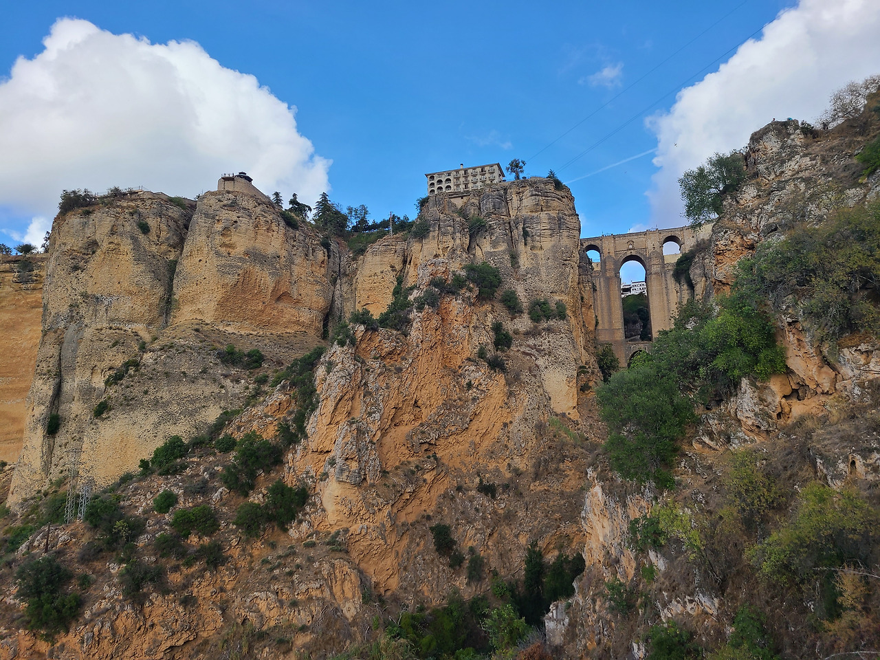 그리고 다시 승합차에 탑승하여 한참을 이동한 후에 들른 도시는 스페인 관광 안내서에 빠지지 않는 론다라는 곳이다. 여기는 협곡 위에 아슬아슬하게 세워진 다리가 유명하고 투우장이 유명하고 헤밍웨이를 비롯한 투우사들의 기억이 남아 있는 곳이다. 헤밍웨이는 우리 식으로 이야기하자면 역마살이 있는 작가라고 생각된다. 세계 곳곳을 누비고 다닌 그의 행보가 우선 그런 생각을 하게 한다. 이탈리아 전선에 참여해서 ‘무기여 잘 있거라’라는 작품을 남기고 파리에서 지내고 스페인 여행을 한 뒤에는 ‘태양은 다시 떠오른다’를 쓰게 되었고 스페인 내전과 관련한 경험을 토대로는 ‘누구를 위하여 종은 울리나’를 썼다고 알고 있다. 그리고 쿠바에 가서 지내면서 ‘노인과 바다’와 같은 불후의 작품을 남겼으나 결국 알코올 중독증을 겪었고 자살로 생을 마감했다. 그의 발길이 여기에도 머물렀던 것이다. 론다에서의 시간은 오래 기억에 남을 것 같다.