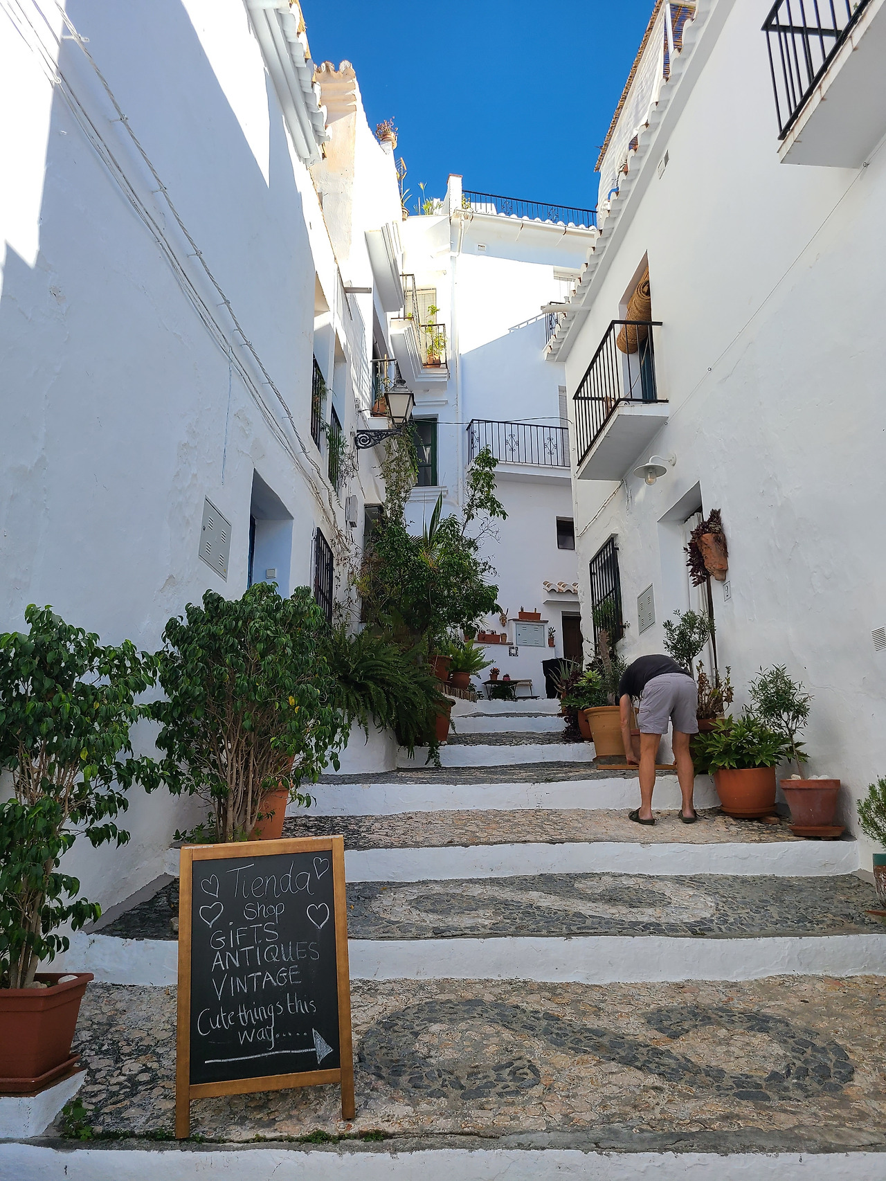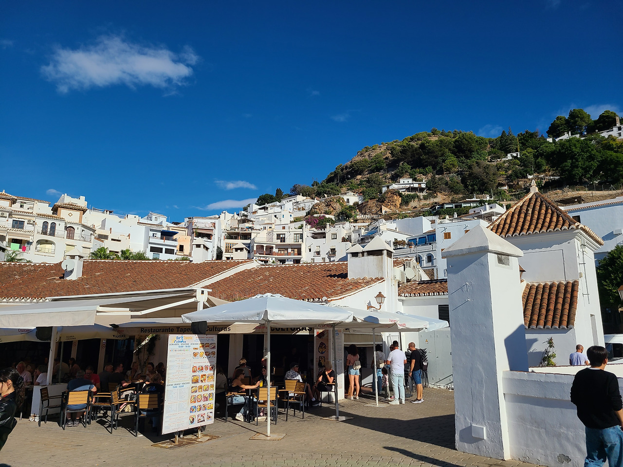 이날 경험해 보니 이 상품은 이용할 만한 가치가 충분히 있다고 본다. 우선 프리힐리아나라는 언덕 위의 하얀 마을에 도착해서 예쁜 골목과 역사를 간직한 집들과 성당을 둘러보고 사진 찍기 좋은 곳에서는 가이드 겸 운전자가 사진을 각각 찍어주는 데 사진이 참 잘 나왔다. 그런 후에 이동하는 곳은 가까운 해안 도시 네르하인데 여기서 점심식사를 할 만한 곳을 안내하고 각자 해결하도록 한 뒤에 휴식을 하고 다시 이동한다. 집사람과 나는 영업 준비를 하는 가게에 들어갔다가 영업 개시 시간이 10분 남았다고 몇 번 쫓겨나다시피 해서 무안하기도 하고 서운하기도 하고 그런 심리 상태를 겪었다. 영 적응하기 힘든 부분 중에 하나다. 그래서 바닷가로 내려가서 유럽의 발코니니 뭐니 하는 이야기를 들은 이곳의 바다를 둘러보고 돌아와서야 식사를 하게 되었는데 말라가 생선튀김과 뽈뽀(문어) 요리를 시켰는데 맛도 있고 양도 무지막지하게 많아서 남은 음식을 싸간다고 용기를 받아서 가져왔고 이는 저녁과 다음 날 아침까지의 일용할 양식이 되어주었다. 스페인 음식 중에서 가장 좋았던 기억이다.
