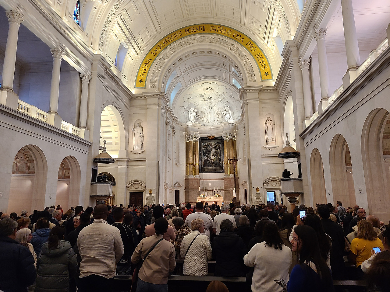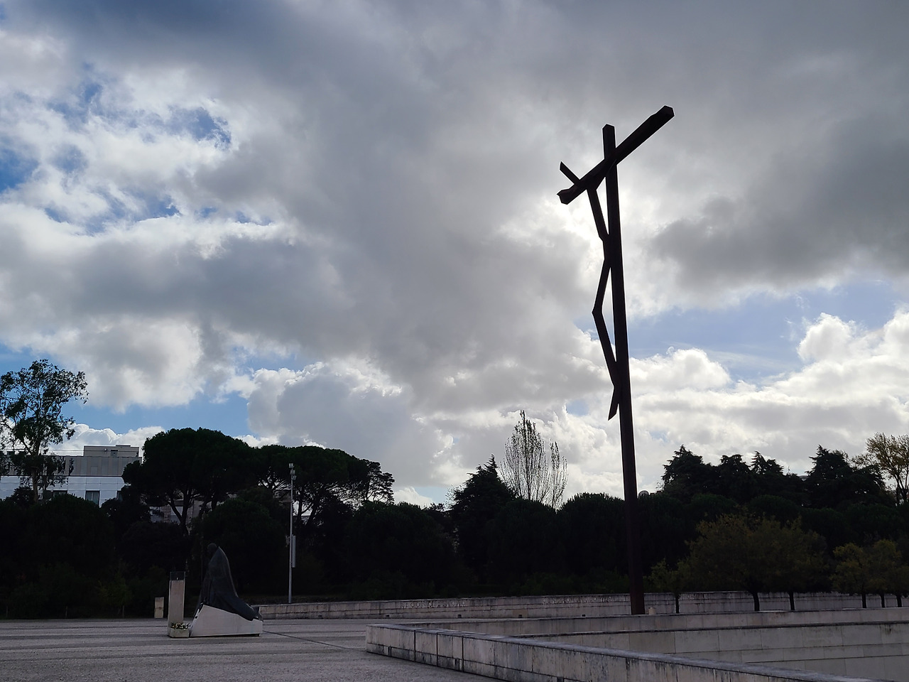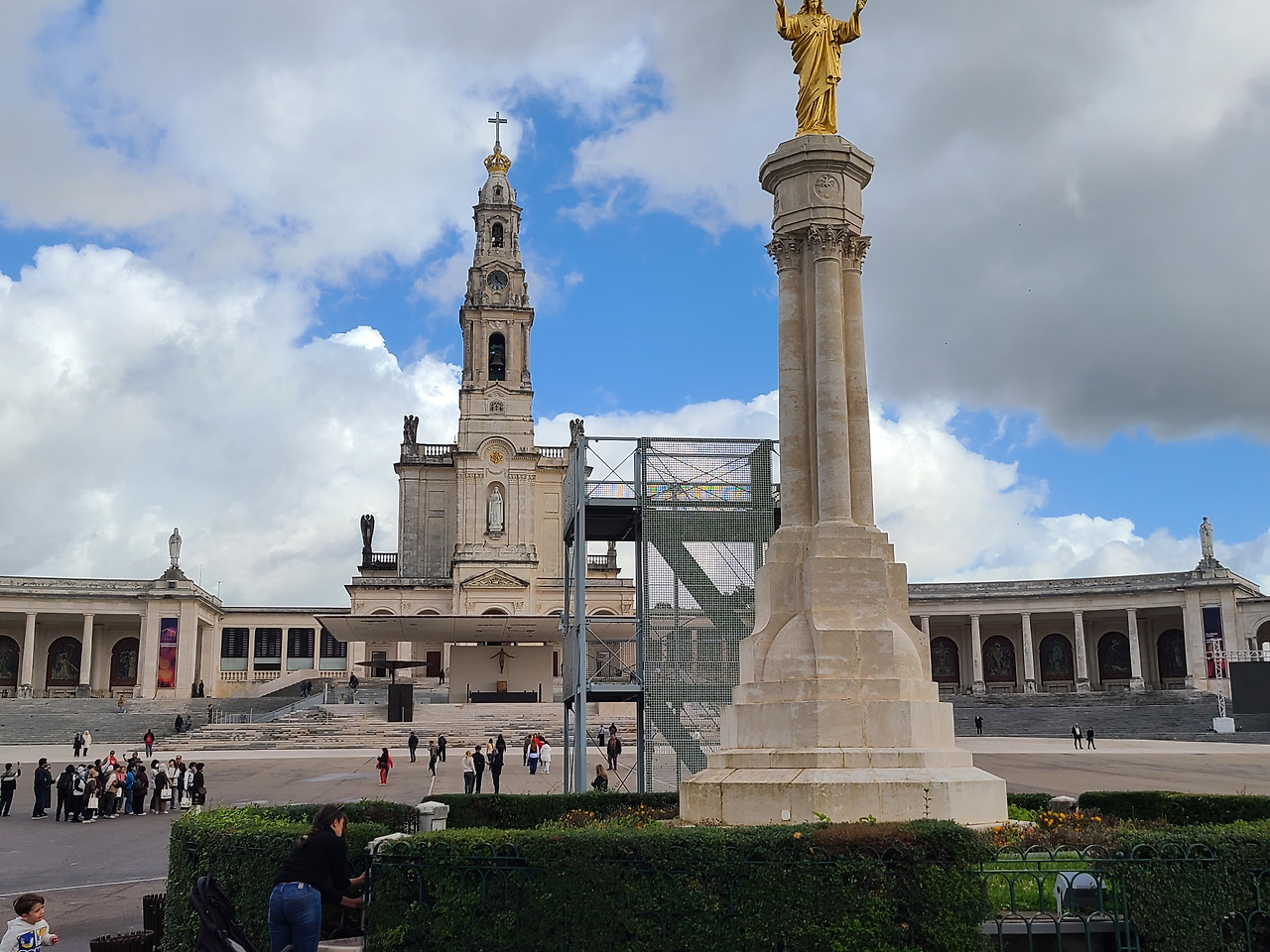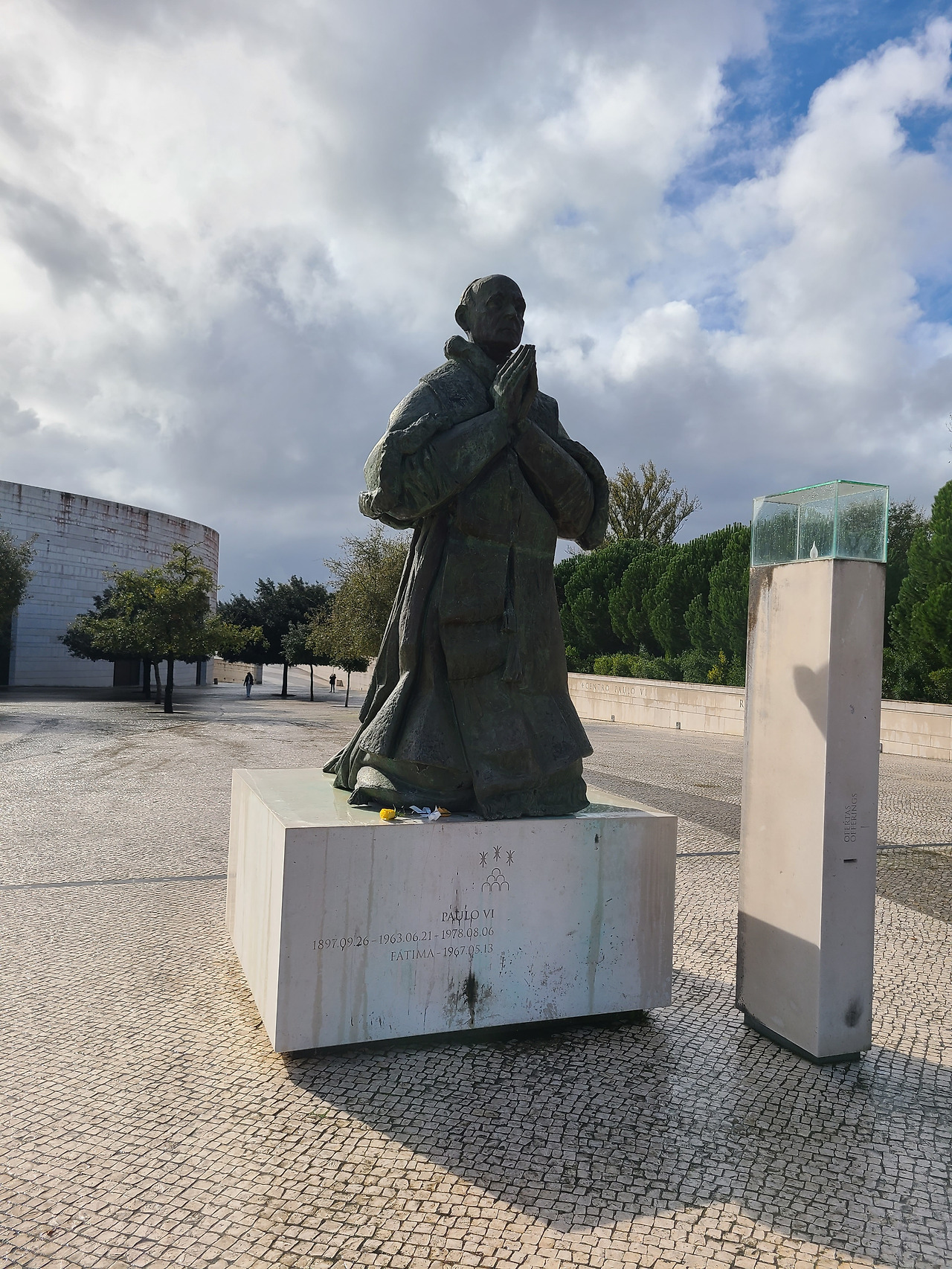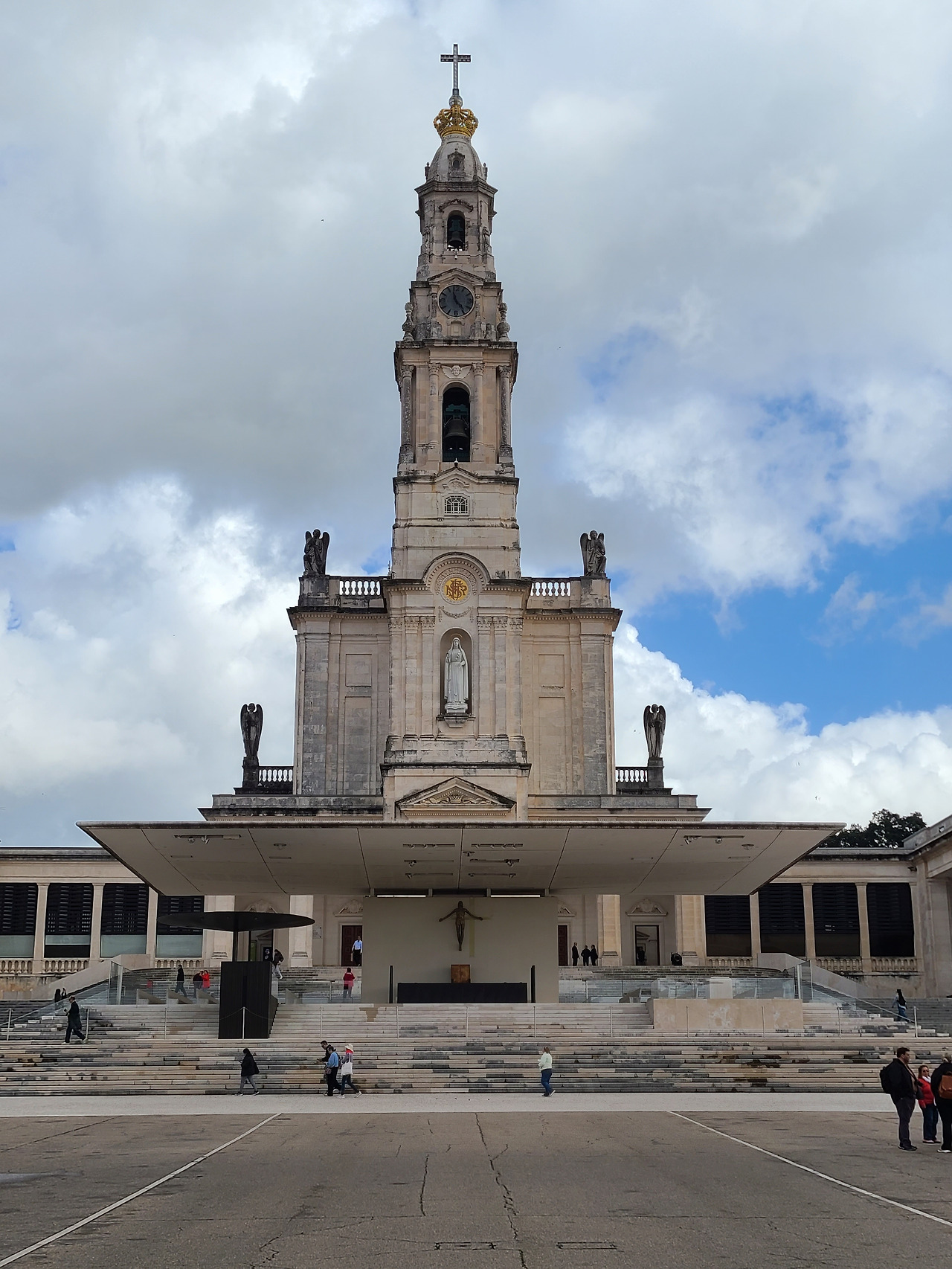 세계적으로 유명한 파티마 성모 발현 성지에 도착한 것은 점심 전이었고 터미널에 도착한 다음 짐 보관 서비스를 개당 5유로로 이용하고 홀가분하게 빈 몸으로 성지의 성당으로 걸어갔다. 거대한 광장이 눈앞에 펼쳐져 있었고 무릎걸음으로 성당을 향해 나아가는 사람도 있었고 초를 봉헌하는 사람들도 눈에 많이 띄었다. 그런데 초를 장작 태우듯 그런 방식으로 태우는 것이 인상적이었다. 한쪽에서는 로사리오 기도를 함께 드리는 장소가 있었고 이날도 비가 오락가락 흐려 있었다.