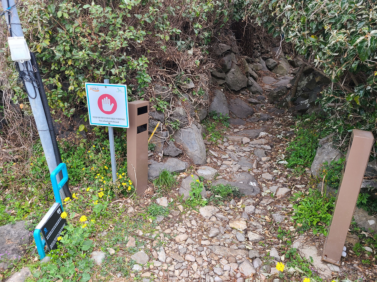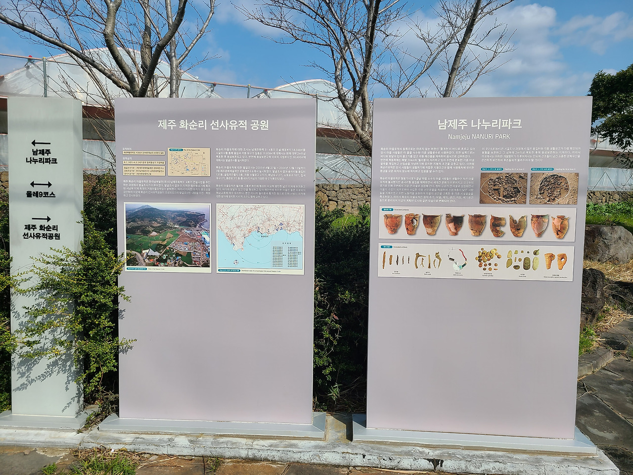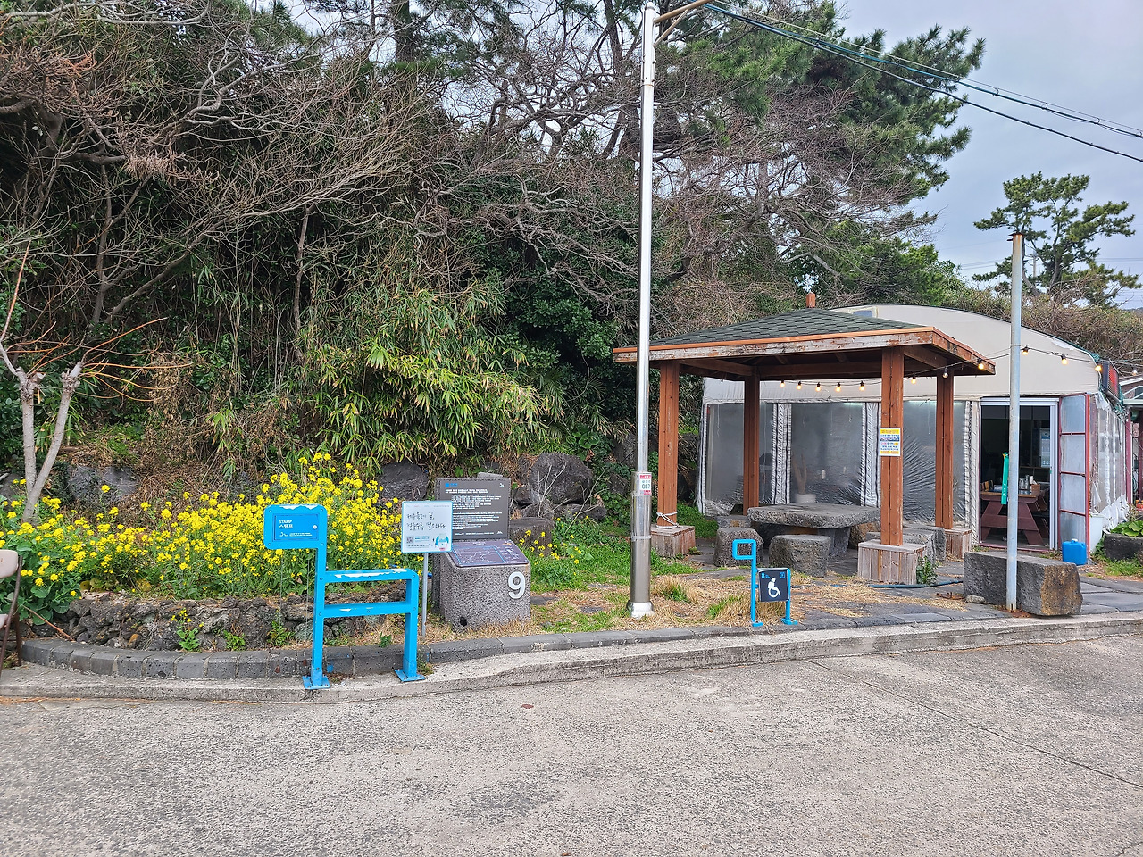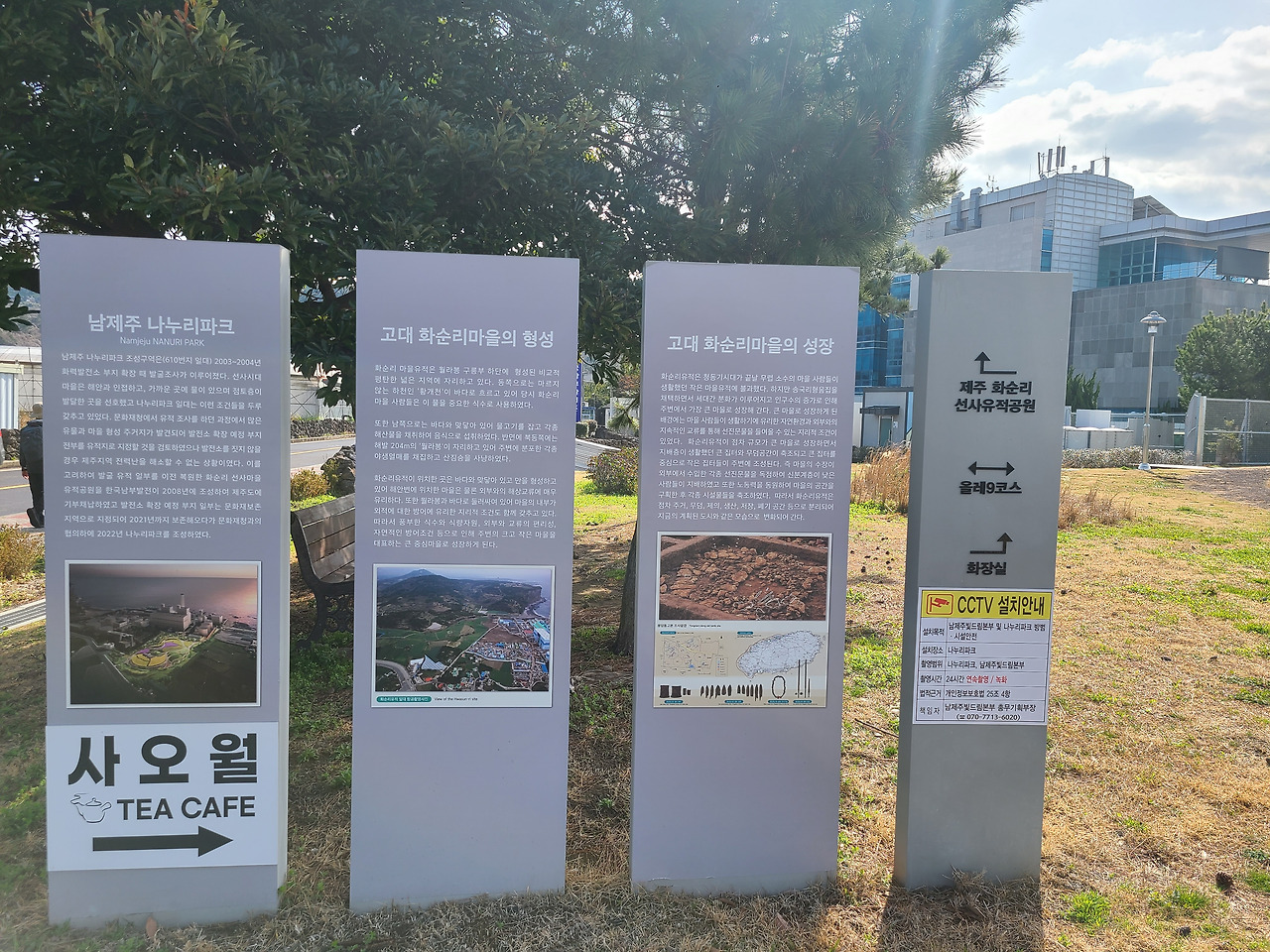 오늘은 계획대로라면 8코스를 걸어야 하지만 처형들이 내일 방문하는 관계로 조금 일정을 변경하여 올레길 9코스를 걷기로 했다. 9코스가 11,8km로 거리가 짧고 따라서 시간도 4시간 정도 소요된다고 안내되어 있기 때문이다. 아침에 대평포구 주차장에 차를 주차하면서 보니 절벽이 웅장한데 이른바 박수기정이라고 한단다. 나폴리 피자 및 호텔이라는 영업장의 건축물은 하얀색에 건물이 인상적이다. 버스 정류장을 물어물어 버스를 타고 화순농협에서 아래쪽으로 내려가다 보면 화순금모래해변 해수욕장이 있는데 여기가 9코스 종점이자 10코스 시작점이다. 올레 안내소가 있다. 이곳에서 역방향으로 출발하여 대평포구를 향해 간다.