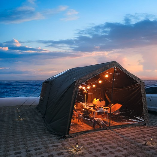 에어 주입만으로 설치가 되는 혁신적 텐트이다. 6인용 넓은 공간과 면 혼방 소재로 감성까지 챙겼으나, 그만큼 무게도 상당히 무거운 편이라 호불호가 있는 제품이다.