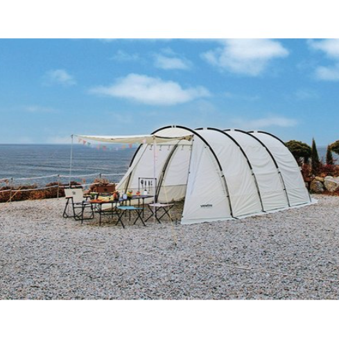 방수, 방염 원단으로 안전성이 높고, 2룸 구조로 공간이 넓으며, 기본 구성품까지 다양해 패밀리 캠핑에 최적화된 텐트이다. 설치가 어려운 편이라 초보 캠핑에는 추천하지 않는다.