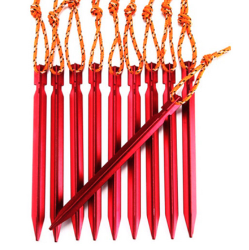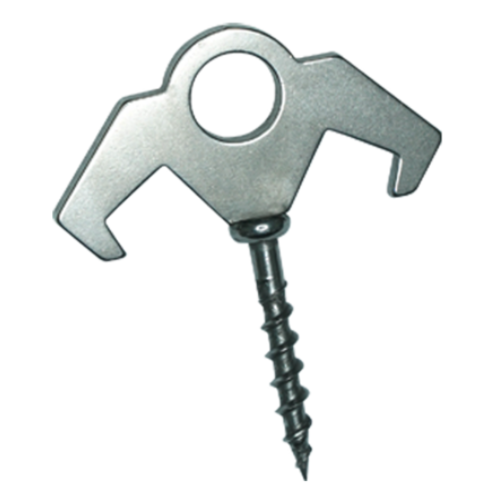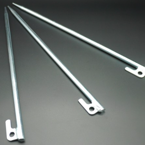알루미늄 합금 소재로 가벼우면서도 내구성이 좋다. Y자 구조로 무게 대비해서 고정력도 좋으나, 짧은 길이로 대형 텐트나, 젖은 땅에는 한계가 있다.