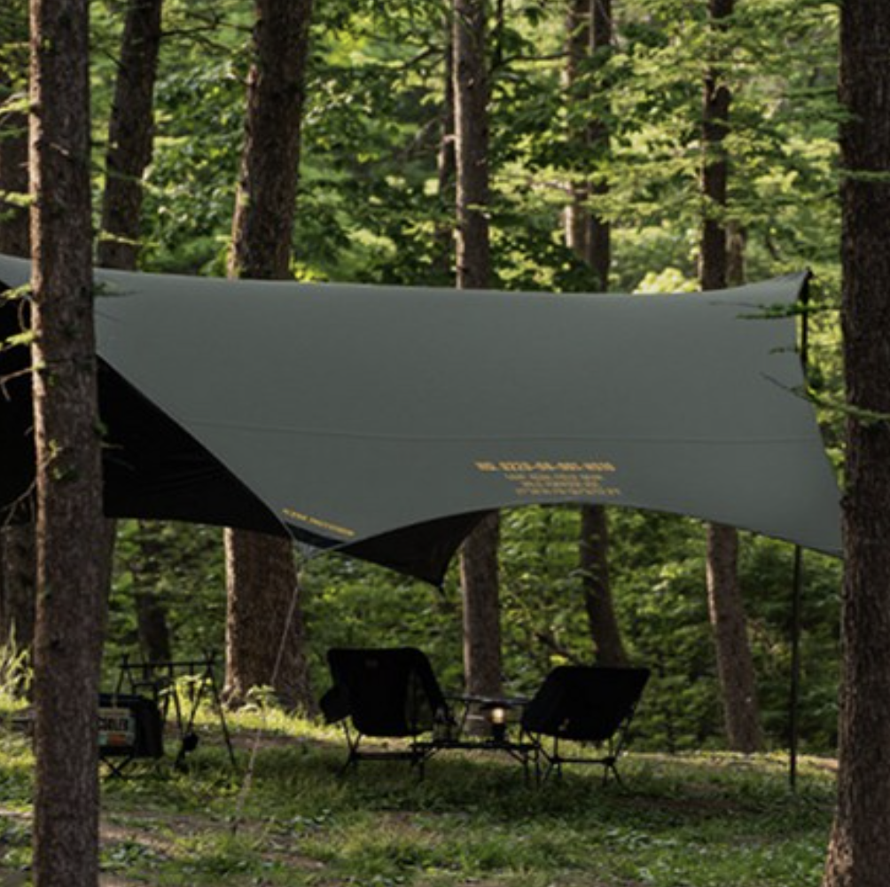 실리콘 & 블랙 코팅으로 가볍지만 방수, 자외선 차단 성능이 뛰어난 타프. 저렴하지는 않지만, 육각형 성능으로 추천.