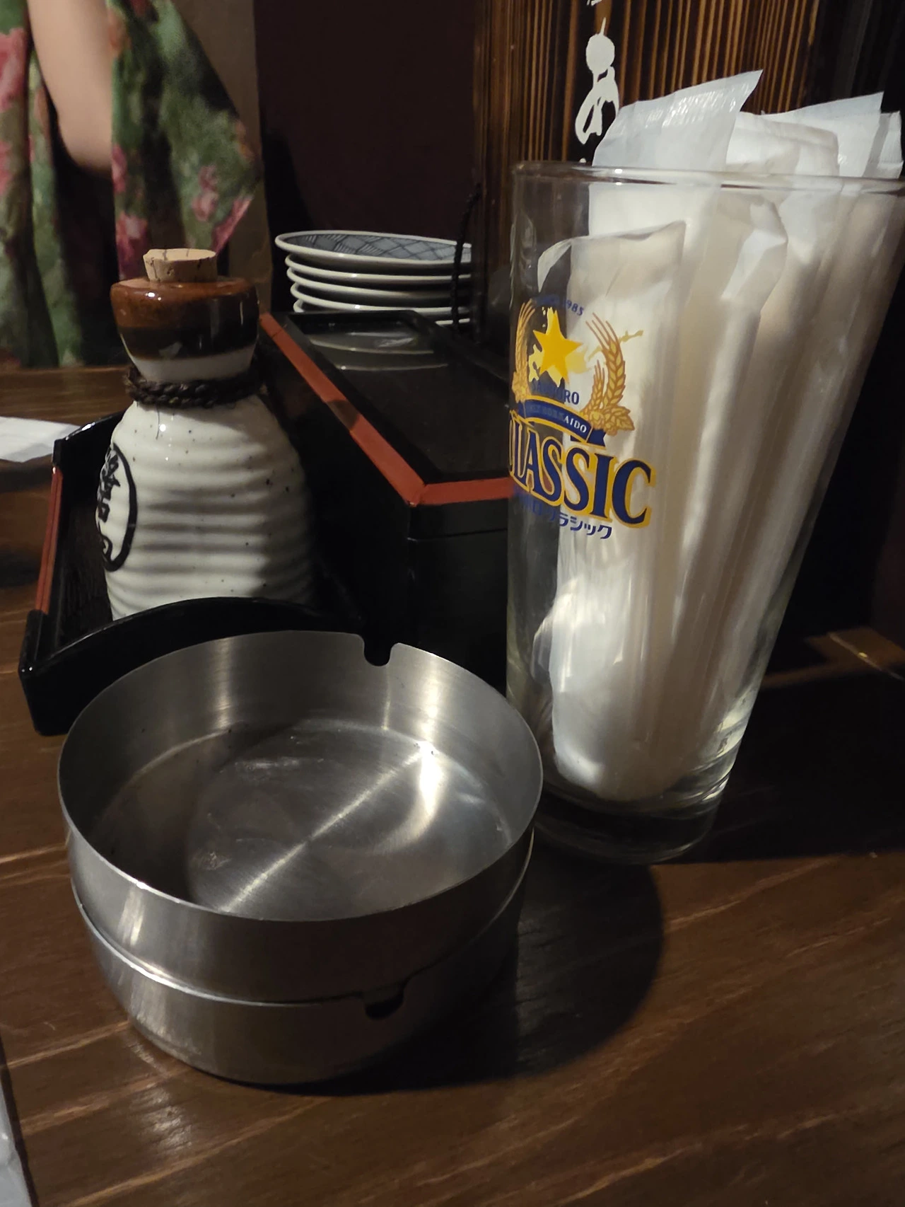 그런데, 이곳은 흡연이 가능하다. 흡연이 가능하다고 해서 모든 테이블에서 연기를 뿜고 있지는 않았지만 바로 옆 테이블에서 담배를 피우는 바람에 좀 당황스러웠다. 이렇게 테이블마다 재떨이가 있는 식당은 정말 오랜만이네. 야끼도리를 위주로 먹었는데 담배냄새 때문인지, 맛을 잘 느낄 수 없을 정도였다. 어쩌면 그 집 음식이 그냥 그저 그랬을지도. 그나마 우엉튀김 정도가 상당히 깔끔하다는 느낌을 받은 정도였다.