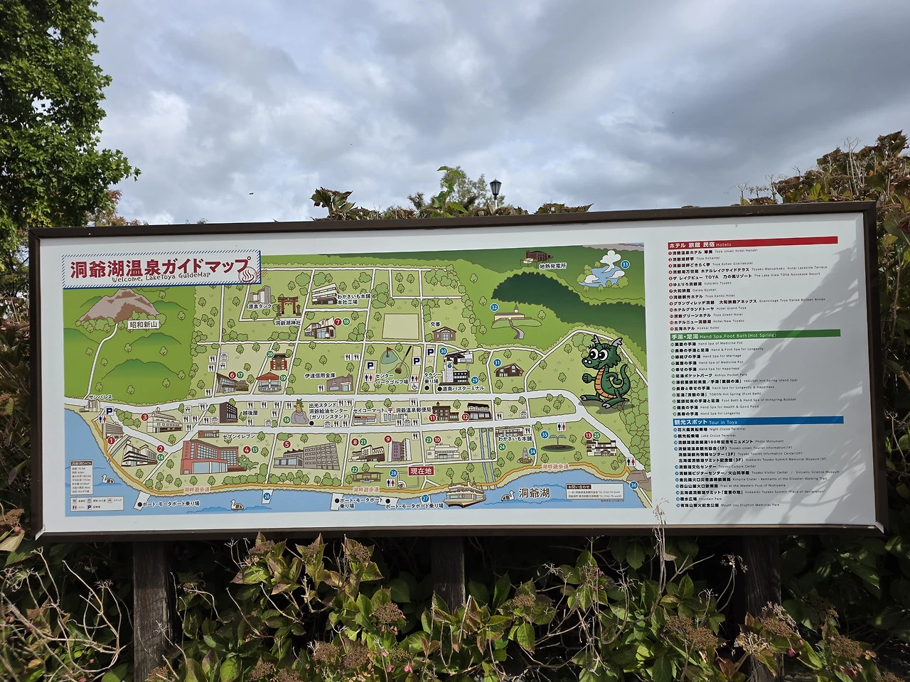 물론 길 건너 마을 시내로 들어가면 각종 식당 들이나 관광상품 파는 곳도 있었던 것 같은데, 11시가 조금 넘은 시각에도 모두 개장 전이어서 마을의 썰렁함을 한층 더 깊게 만들었다. 단지 호수 앞 오리배 대여, 혹은 유람선 들만 북적이고 있어서, 온천 리조트 외 다른 경제구조가 버티기에는 악순환만 계속되는 걸로 보였다. 어쩌면 도야호 온천마을뿐만 아니라, 관광 리조트 산업을 도입하는 전 세계의 소도시들의 운명일지도 모른다는 의미 없는 걱정에 잠시 빠졌다가...