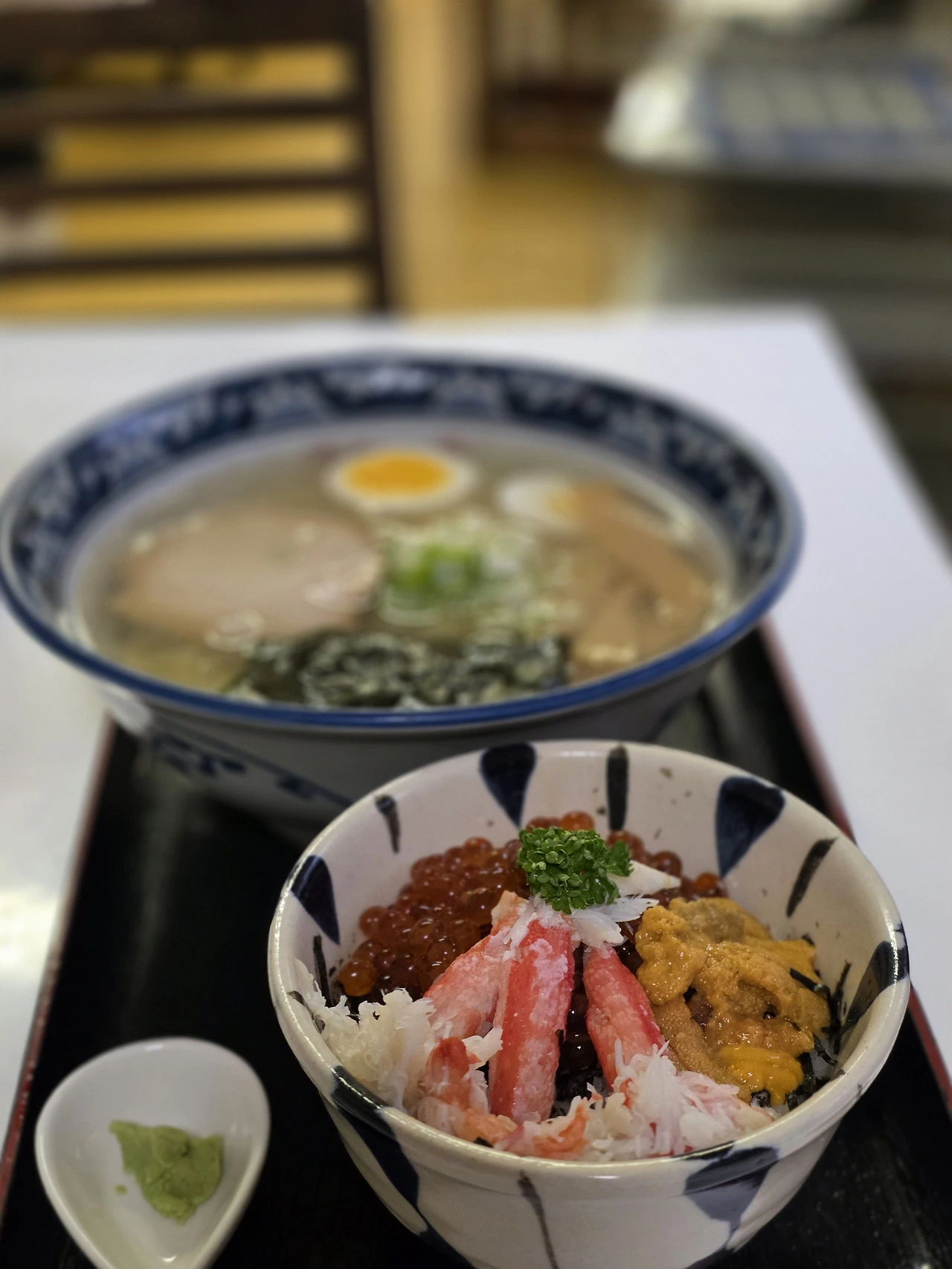 해장을 겸한 하코다테 마지막 조식을 위해 어젯밤 수많은 검색 결과 도달한 장소 - 히로바 아침 시장 골목에 있는 '아지노이치방 (味の一番 최고의 맛?)'. 하지만 이름값을 못한다. 밴쿠버에서도 이런 식으로 라면을 만들면 망한다. 간수냄새 그대로 나는 면에 기름기 둥둥 떠있는 짜기만 한 닭국물. 덜 익은 멘마와 퍽퍽한 챠슈. 이게 개항 당시 하코다테에 처음 들어온 중국식 수타국수의 원형이라고 한다면 할 말이 없지만, 그래도 너무 한다는 생각이 들었다. 만화 <멋지다 마사루>를 본 이후로 줄곧 먹고 싶었던 미역 라면이었는데, 미역과 함께 국물을 내는 것이 아니라 따로 삶은 미역을 나중에 라면에 얹어 내었다. 그나마 아내가 선택한 콤보메뉴에 같이 나왔던 카이센동은 그럭저럭 먹을만했었지만.
