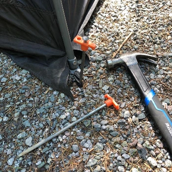 비록 월마트에서 100불을 주고 구입한 싸구려 텐트였지만 세워보니 제법 번듯해 보였는데, 문제는 바닥에 14개의 팩을 모두 단단하게 박고 나서야 비로소 텐트를 세울 수 있다는 점에 있었다. 비가 많이 오는 광역 밴쿠버 지역의 BC 주립공원 캠프 사이트 바닥이란 게 워낙 단단하고 돌들이 많아서, 플라스틱 팩과 고무망치로는 땅에 팩을 박는 데에만 엄청난 시간과 근력이 소모되는데, 하루 텐트를 치고 나면 그다음 날 저녁까지 오른손 근육이 얼얼해서 젓가락질도 제대로 못 하고 라면 먹기도 힘들었다. 이는 이후에 밴쿠버 지역 보이스카웃 출신의 한 직장 동료로부터 못 모양의 팩과 쇠망치가 필요하다는 팁을 얻기 전까지 계속되었다.