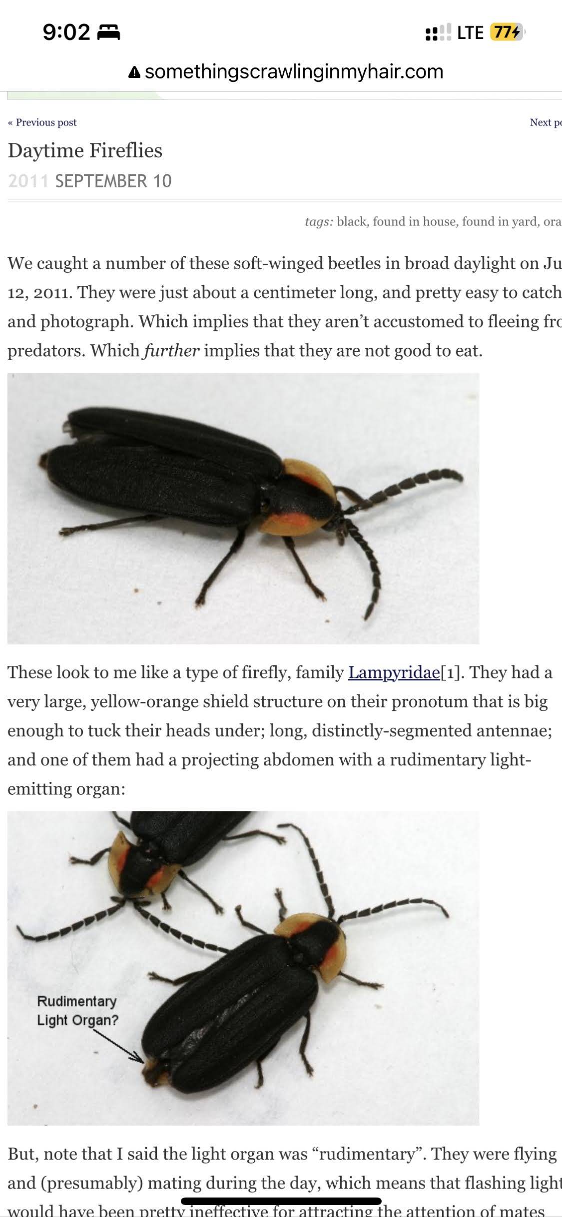 습지에 위치한 캠핑장이라서 그런지, 광역 밴쿠버에서 운영하는 '더비리치 공원 (Derby Reach Park)'의 '에지워터바 (Edge Water Bar) 캠핑장'과 더불어 밴쿠버 캠핑장 중 모기가 가장 많기로 유명한데 (https://www.cbc.ca/news/canada/british-columbia/township-langley-mosquito-1.6862607), 아직 밤에는 공기가 쌀쌀해서 그렇게까지 심하지는 않았다. 일찌감치 명성을 알고 있어서 모기장 텐트와 얼굴에 쓰는 모기장 베일까지 준비했지만 딱히 쓸 일은 없... 는 줄 알았는데, 이곳에는 모기 말고 진정한 맹수가 있었다. 이미 쌀쌀한 공기가 감도는 첫날 저녁에는 잘 몰랐지만, 다음날 햇살이 들자 이들이 서서히 모여들었는데, 다른 사이트에는 그리 많이 보이지 않았고 유독 우리 사이트, 우리 트레일러 지붕, 우리 가제보에 몰려왔다. 어흑. 아직 작년의 송충이 충격이 가시질 않았는데 이건 또 뭔 재난이냐. 흘깃 보면 덩치가 작은 바퀴벌레처럼 생긴 풍뎅이과 곤충이었다. 처음에는 그냥 테이블이나 흰색 식기류에 모이더니, 어느새 옷에, 머리에, 목덜미에 턱턱 날아 앉았다. 재빨리 사진을 찍어서 구글 검색을 해봤더니 'Daytime Fireflies'라고 한다. '낮 반딧불이' 라니.. 물론 바로 10초 전까지 혹시 바퀴벌레가 아닐까 걱정했던 것보다는 무척 낭만적인 정체성을 가지고 있지만, 그래도 '낮 반딧불이'라니... 이건 뭐 주성치의 <북경 007>에 나왔던 태양열 전등과 같은 개념인가? 햇빛이 있을 때만 불이 켜지는...이라는 생각이 들었다가, 그래도 생명체인데.. 효용성으로만 존재의미를 평가해서는 안 되겠다는 생각이 들어 얼른 말을 삼켰다.