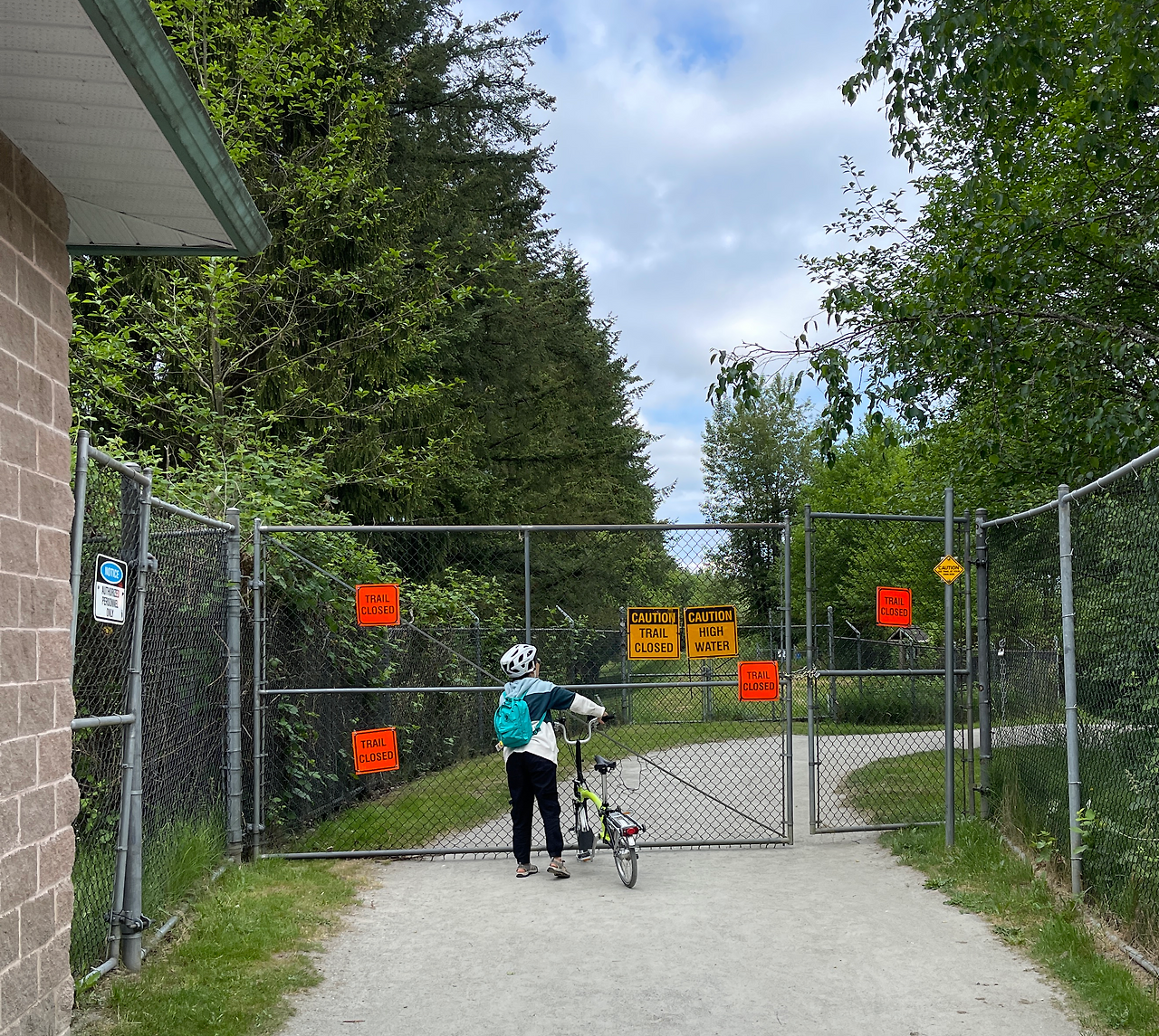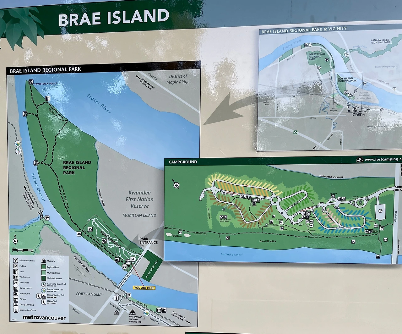 다음날 아침은 간단히 컵라면으로 요기를 하고 자전거로 동네 산책을 나가보기로 했다. 언젠가부터 관광도시로 발전해 오고 있지만, 워낙에 차량통행량이 적고 이전부터도 이곳저곳 공원이 많았던 (심지어 국립공원 민속촌 (National Park Historic Site) 도 있다) 포트 랭리에는 자전거 도로가 제법 잘 발달되어 있어서 시내에서 자전거를 타고 충분히 안전하게 이동할 수가 있게 되어있다. 말하자면 이곳 '브래 섬 공원 (Brae Island Regional Park)'에서부터 근처의 '더비리치 공원 (Derby Reach Regional Park)'까지도 자전거로 갈 수 있다는 말인데, 아예 각 잡고 라이딩을 해보려고 헬멧까지 쓰고 나섰으나 중간에 프레이저 간 범람 때문에 산책로가 폐쇄되었다는 안내를 보게 되었다. 그렇다고 이대로 돌아가기는 좀 시시하고, 나선 김에 자전거로 동네 산책을 해보기로 한다.