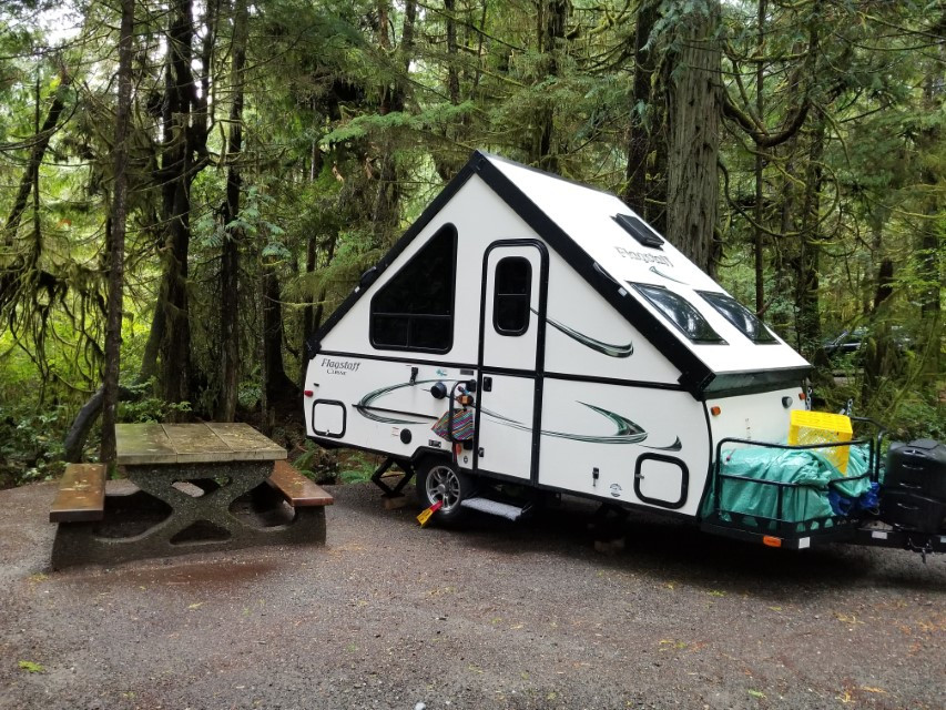 캐나다 서부 '퍼시픽림 국립공원 (Pacific Rim National Park)'에는 온 세상 써퍼들이 애정해 마지않는 '롱비치 (Long Beach)'라는 해변이 있는데, 롱비치 해변 근처 '그린포인트 해변 (Green Point Beach)'에 캠핑장을 만들어 두었다. 해안까지 접근이 쉽고, 화장실 시설이 완전 신삥이고, 국립공원이니 당근 전기 들어오고, 주립공원에 비해 예약비나 숙박비가 싸고…등등 아주 쾌적한 캠핑장이지만 예약하기가 매우 힘들다. 그래서 보통 직장 상황은 깡그리 무시한 채, 연초에 캠핑 계획을 일단 잡아 두고 나서 거기에 맞춰 일 년 휴가계획을 세우는 경우가 허다하다. 이번에는 막판까지 갈팡질팡하느라 오늘 묵을 35번 사이트에선 하룻밤만 신세 지기로 했다. 캠핑장에 도착하니 비가 잠시 갠 상태였지만 어차피 밤새 비가 올 예정이고, 하루만 있다가 옮길 터이니 우천대책 같은 건 포기하고 간단하게 트레일러만 설치하기로 한다.