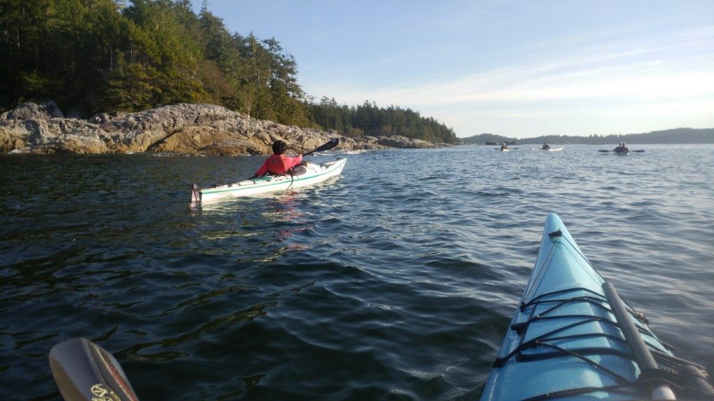 뒤를 돌아보니 아내가 많이 뒤처져 있다. 뭐.. 급할게 뭐 있나. 근방 섬들의 역사나 전설에 대해 강사가 설명하는 걸 못 듣는 거뿐이지. 기세 좋게 싱글 카약을 탄 것까진 좋았지만, 더블 카약을 탄 두 사람이 함께 패들링을 하는 동력을 따라가긴 힘들었나 보다 (심지어 할머니들 한테도 뒤쳐졌다 ㅠㅠ). 어느 정도 따라가다가 사진 찍고 그러면서 아내를 기다리고.. 다시 따라가면서 중간쯤 거리를 유지하고 뭐 그런 식으로 싱글 카약킹을 즐겼다. 그리고 그게 처음이자 인생 최후의 싱글 카약킹이 될 찬스가 매우 높아 보였다.