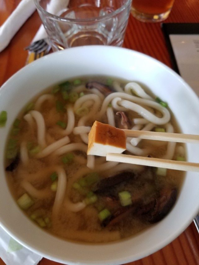 일단 다운타운으로 나서서 '소보'에서 아점을 먹기로 한다. 지난번 왔을 때 메뉴판에서 우동된장국 메뉴를 보고 궁금했었는데. "오오오. 아니나 다를까... 매우 맛있다. 이야… 여기 요리사 정말 잘한다… "하는 감탄사가 다시 나온다. 다시 국물을 어떻게 냈는지 모르겠지만 감칠맛과 염분의 농도를 정확히 맞춘 건 물론이고, 뭣보다 놀라운 건 중국식 두부를 훈제해 넣어서 가츠오 부시 느낌을 몇 배로 증가시켰다는 것. 그리고 여기에 버섯으로 엑센트를 줬다. 아니... 어떻게 우동에 두부를 훈제해서 넣을 생각을 하는 거지? 이런 걸 보면 오히려 선입견이 없는 서구 요리사들이 오히려 더 동양요리에 다양한 상상력을 넣는 것 같다. 같이 주문해서 마신 아이스티 역시 텁텁한 입맛을 싹 씻어주었다. 면발의 쫄깃함이 나한테는 좀 부족했던 느낌이긴 했지만... 뭐 국수를 직접 만들지 않는 한, 쫄깃한 우동국수 재료를 구하기 지리적으로 한계가 있을 것 같다. 암튼 이것도 순식간에 국물 한 방울까지 흡입.