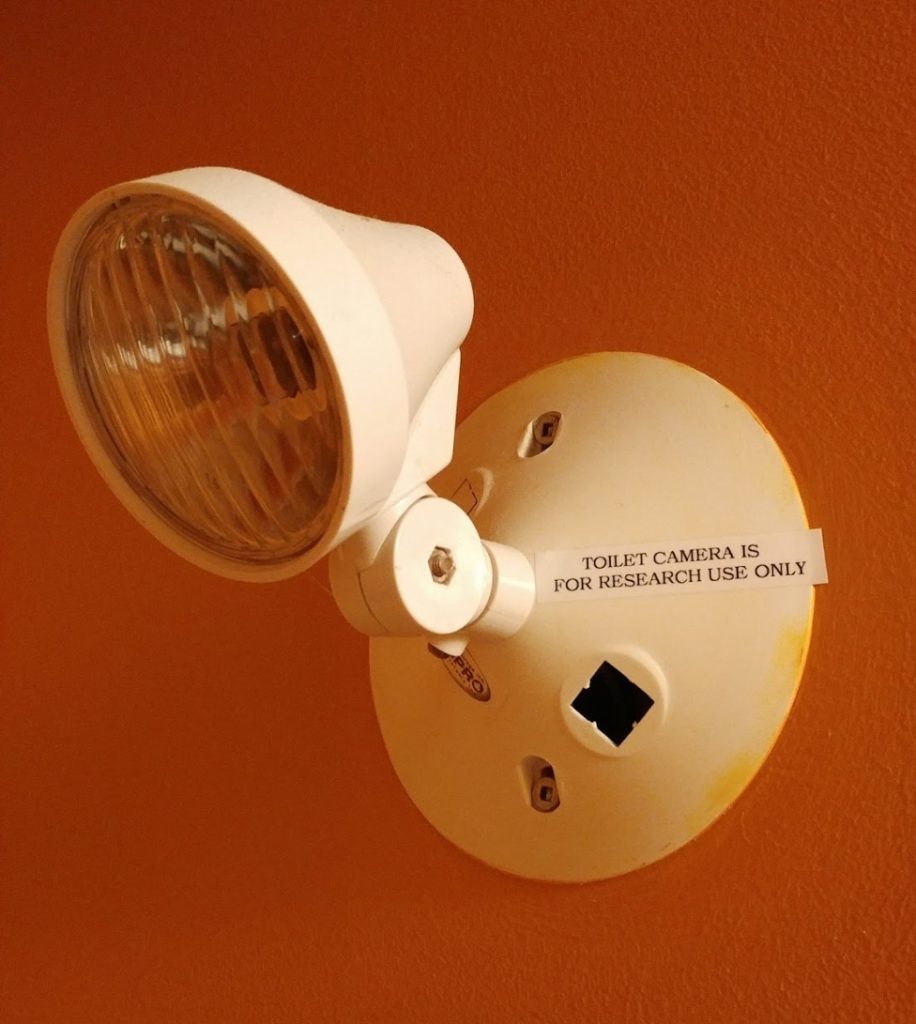 화장실에 갔더니 웃기는 낙서가 있다. 아니 낙서라고 하기엔 너무나 진지해서 이게 농담인가… 헷갈리기도. 북미의 상업용 건물에는 건축법 상 화재 시 대피를 위한 비상 스트로브 등을 화장실에도 설치하게 되어 있는데, 제품에 따라 마치 방범 카메라 모양처럼 생긴 것도 있다. 그 아래 누군가가 제대로 된 타이핑으로 “촬영 영상은 연구 목적으로만 쓰임”이라고 스티커를 붙여 놓았다…. 아.. 이게 농담이 맞겠지? 이런 농담을 걱정 없이 한다는 게, 어떻게 보면 부럽기 그지없다.