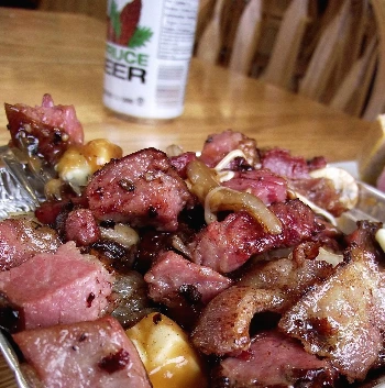 알고 보니 퀘벡주 몬트리올에 본사를 둔 프랜차이즈 식당이었지만, 푸짐하게 쌓은 감자튀김 위에 깍둑 썰은 훈제 햄 및 각종 치즈를 때려 넣은 다음 그레이비소스를 잔뜩 뿌린, 듣기만 해도 콜레스테롤 대폭발할 것만 같은 이 음식에 감동을 받을 줄은 몰랐다. 여기에 퀘벡에서만 팔고 있다는 ‘솔의 눈 (Spruce beer)’ 음료가 느끼한 맛을 싹 가셔 주었다.
