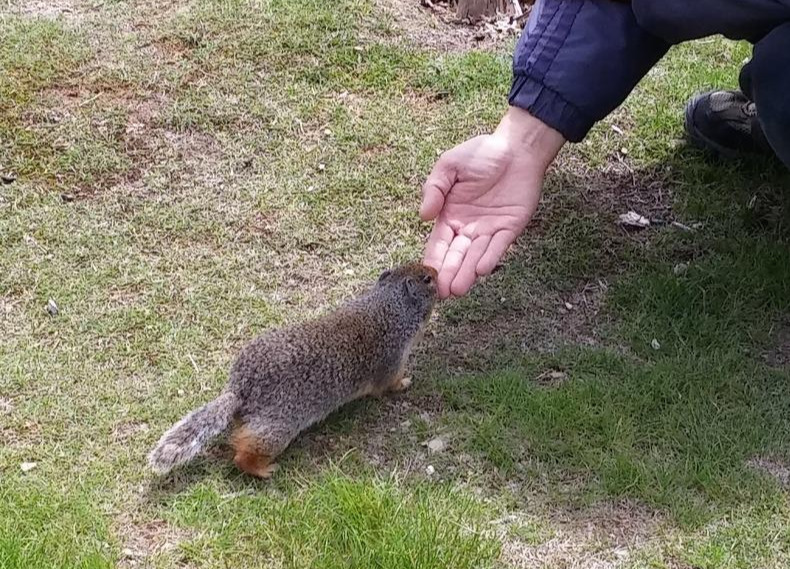 라이트닝 호수 주변의 (성긴) 풀밭 - 흙밭에는 이른바 '땅다람쥐 (Gopher)'들이 잔뜩 모여 살고 있는지 바닥에 여기저기 구멍이 나 있었다. 광역 밴쿠버에서는 별로 볼 일이 없었지만 이곳이나 벤프처럼 고원 지역에 놀러 가면 항상 이 땅다람쥐들을 만나게 되었다. 이곳의 땅다람쥐들은 좀 더 사람들 경험이 많은 건지, 누군가가 풀밭 근처로 가면 어디서든지 뛰쳐나와서 ‘저 인간이 뭘 좀 주려나..’하면서 간을 보는 것 같았고, 때론 두 손을 가지런히 모은 채 구걸을 하기도 했다. 나나 아내나 야생동물에게 사람 음식을 나눠주는 행위를 그리 달갑지 않게 여기는 편이어서, 그냥 맨손을 내밀고 주는 척 뻥카를 날리다가 아내에게 등짝을 맞기도 했다.