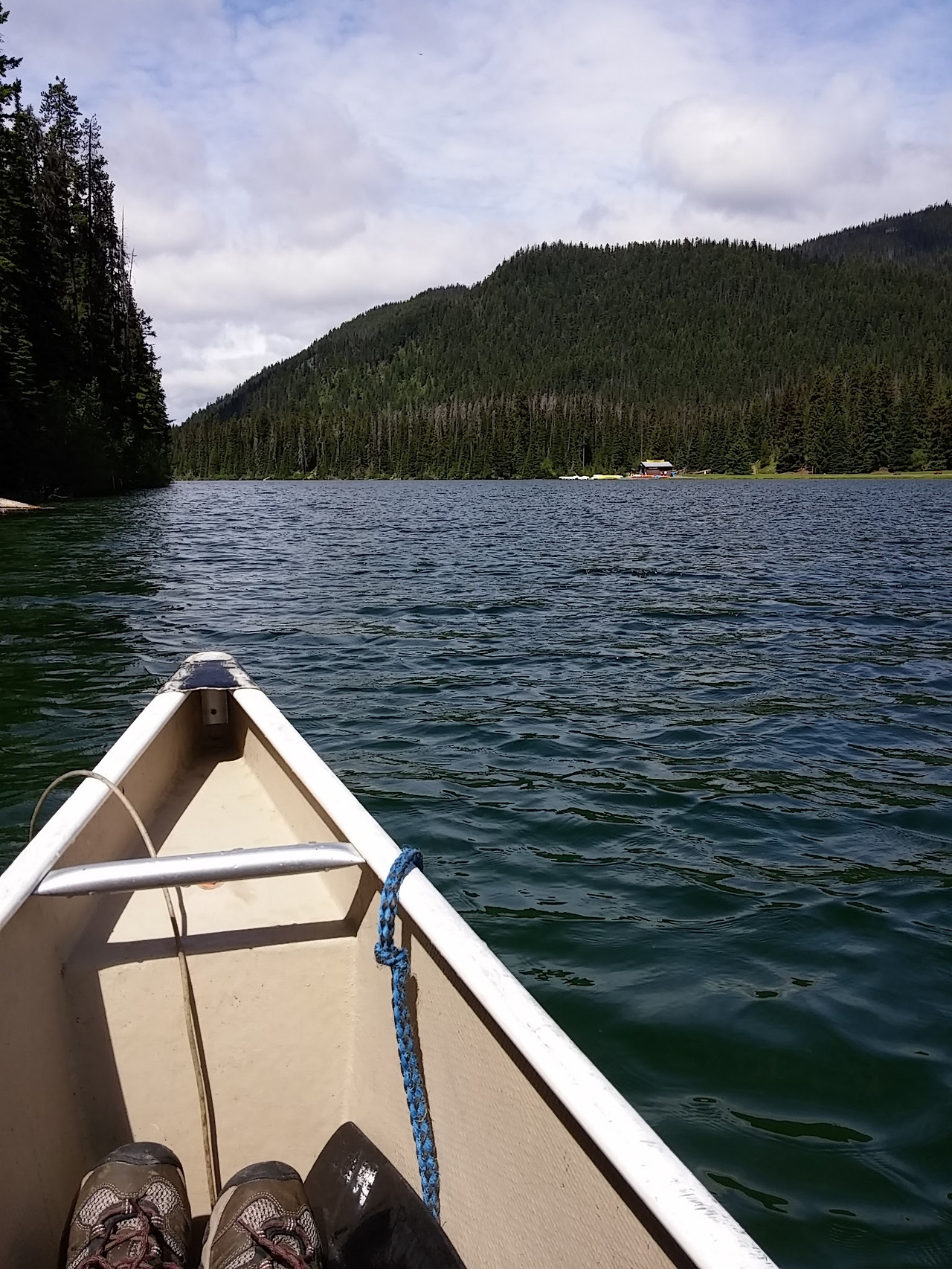 다음날에 느지막이 일어나 보니 날씨는 완전히 갠 상태… 하지만 뭔가 부스러기 같은 걸 얻어먹고자 찾아온 새들이 스크린 하우스에 갇혀 버둥거리고 있었다. 잘 달래서 날려 보내준 후 아침식사를 하고 나서 슬슬 주변 산책을 나섰다. 라이트닝 호숫가 당일 피크닉 (Lightning Lake Day use area) 장소 쪽으로 내려가 보니 카누와 카약 대여를 하고 있었는데, 왠지 몸을 바짝 감싸고 있는 카약보다는 카누가 더 안전해 보여서 (사실은 카약이 제일 안전한 수상교통기구랍니다) 카누를 빌려서 호수를 한 바퀴 돌았다. 광역 밴쿠버 지역에 비해 무척 저렴한 가격으로 대여를 할 수는 있었지만…