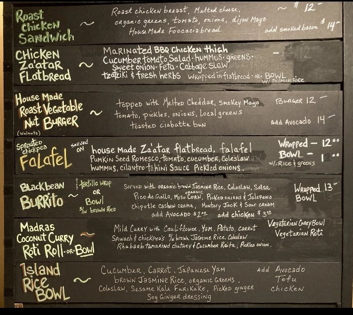 각종 SNS와 여행 전문 사이트에서 90%에 가까운 극찬을 받은 F 식당의 음식들은 생각보다 너무 평범했다. 십여 년 전부터 자연산과 유기농 재료를 전면으로 내세웠던 광역 밴쿠버의 외식 문화는 몇 해 전부터 로컬 재료를 사용하는 식단이라는 걸 주요 홍보전략으로 사용하는데, (자칭) 예술가들이 많이 산다는 이곳 걸프 군도에 있는 식당도 마찬가지로 유행을 따르고 있었다. 그렇다 보니, 그냥 그냥 밴쿠버와 비슷한 수준의 자연식 샌드위치나 팔라펠, 부리또가 나왔고, 2018년 기준으로는 서빙 양에 비해 가격이 꽤 높았던 것으로 기억이 난다.