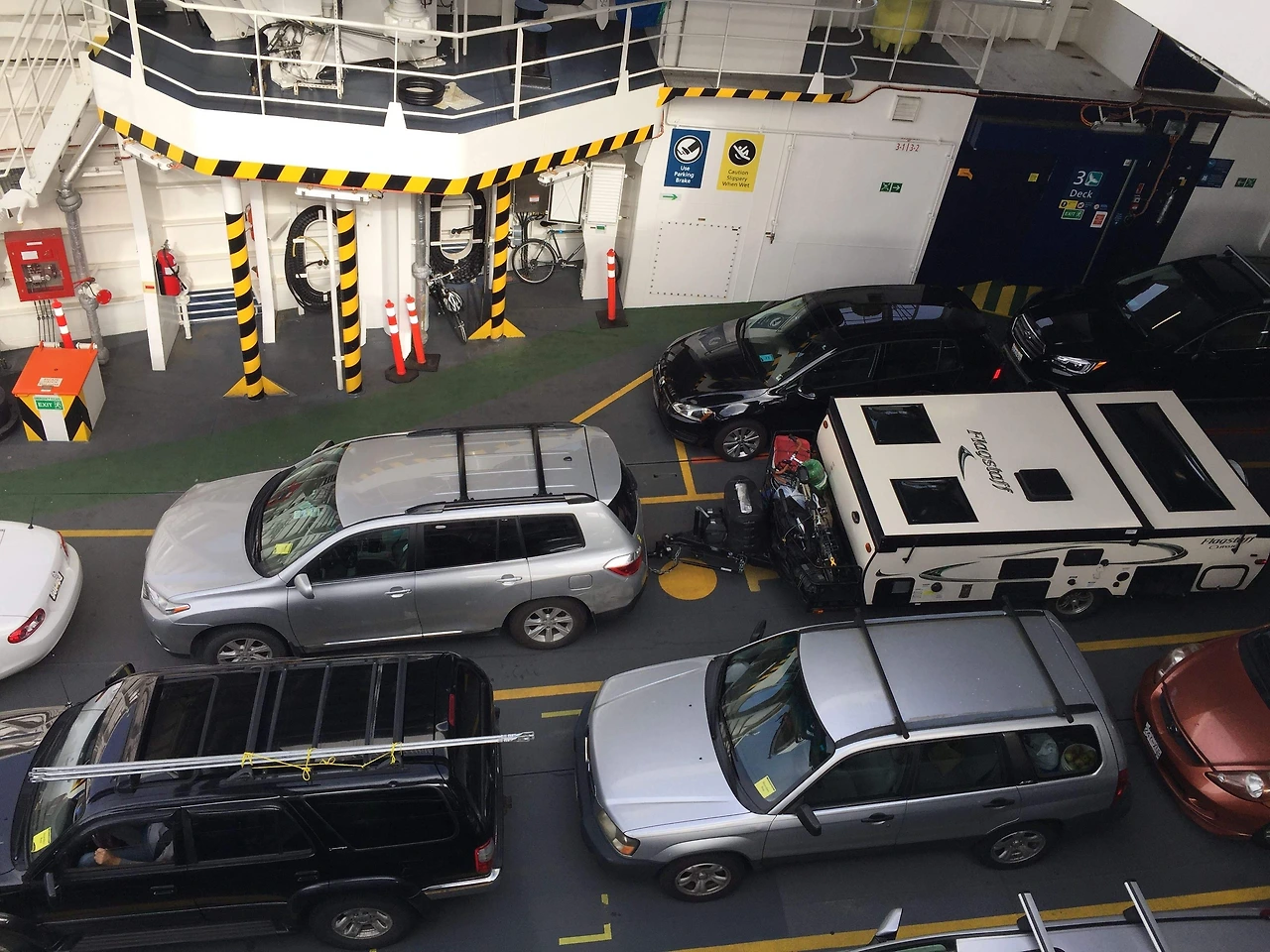 ‘걸프 군도 (Gulf Islands)’는 밴쿠버섬과 광역 밴쿠버 사이에 있는 일련의 섬들을 통칭해서 부르는 말인데, 밴쿠버섬과 BC 주 (혹은 미국 워싱턴주) 사이에 있는 바다를 ‘샐리시 바다 (Salish Sea)’라고 해서, 옛날 이 지역에서 살던 원주민 부족 이름을 딴 바다가 있고, 그 바다에 있는 섬들 중, BC 주 영토는 ‘걸프 군도’, 미 워싱턴주 영토는 ‘산후안 제도 (San Juan Islands)’라고 한다. 광역 밴쿠버 ‘트와슨 (Tsawwassen)' 페리 터미널에서 출발하는 페리 중에는, 밴쿠버 섬 빅토리아시 근처 ‘스와츠 베이 (Swartz Bay)’ 터미널로 곧바로 가는 직항 페리도 있는 반면에, 걸프 군도의 섬들을 돌아 돌아서 가는 완행 페리도 있다. 물론 BC 페리가 걸프 군도의 모든 섬들을 다 들르는 건 아니고, 어느 정도 규모가 있는 네댓 개 섬에만 페리 항구가 있어서, 나머지 작은 섬들은 개인 소유의 배를 이용해서 가야 한다. 우리의 첫날 목적지는 ‘갈리아노 섬 (Galiano Island)’이었기 때문에, 트와슨 페리 터미널에서 완행 페리를 타기로 했다.