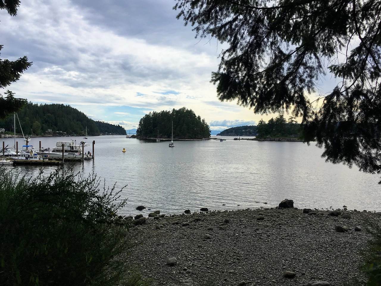 먼저 BC 페리를 타고 렝데일에 도착해서 도보 승객용 출구로 나오다 보면, 버스 정류장 가는 방향 반대편 쪽으로 키츠 섬 행 보트를 타는 선착장으로 가는 길이 있었다. 보트에는 한눈으로 봐도 파이프 담배가 어울리게 생긴 과묵한 선장님과 가족으로 보이는 선원이 한 명 있었는데, 중간에 ‘갬비어 섬 (Gambier Island)’에 잠깐 들른 것까지 총 20분 정도 걸린 것 같았다. 키츠 섬 항구에 도착해서는 우리가 타고 온 배가 아닌, 다른 워터 택시 서비스도 있다는 걸 발견했다. 게다가 이건 깁슨 항구에서 인당 17불 정도의 요금을 내고 ‘플럼퍼 코브’ 선착장까지 곧장 올 수 있었다. 어쩌면 그 당시 모든 여행 계획을 세웠던 아내도 이미 알고 있었을지도… 하지만, 뭐.. 이미 여기까지 이고 지고 왔으니 아무 소리 않고 가던 길을 재촉한다.