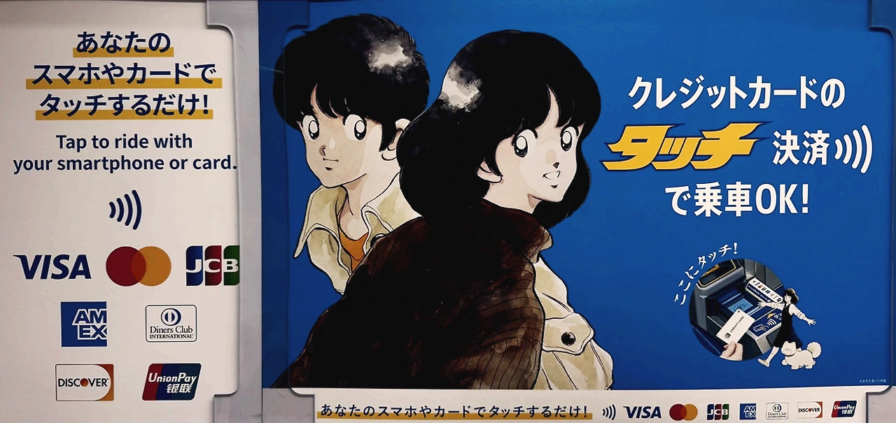 잠깐 곁길로 빠져서 교통카드에 대해서 얘길 하자면, 일본에도 교통카드가 한국의 티머니 카드처럼 편의점 등에서 전자 결제수단으로 사용되는데, 일단 종류가 무척 다양하고 (키타카, 수이카, 파스모, 이코카 등) 휴대폰 앱을 설치해서 사용할 수도 있지만, 대중교통에 따라 사용이 불가능한 지역도 존재한다. 예를 들어 지난 요이치 증류소 편에서 삽입한 JR 홋카이도 노선표에도 교통카드를 사용할 수 없는 역을 보여주는데, 이는 단지 카드를 읽고 결제를 하는 기기가 아직 설치 안 되어서 그런 걸로 보인다. 예를 들어, 지하철 내에 광고 중 하나가 아다치 미츠루의 <터치> 광고였는데, 처음엔 그게 최근에 다시 연재를 하는 건가 싶었지만, 자세히 보니 크레디트 카드를 터치해서 요금을 결제하는 새로운 전철요금 결제 방식을 홍보하고 있었던 것이었다. 영미권에서는 카드를 '탭'한다고 하고, 한국에서는 카드를 '찍는다'라고 하지만, 일본에서는 '터치'라는 생소한 용어를 썼던 것.