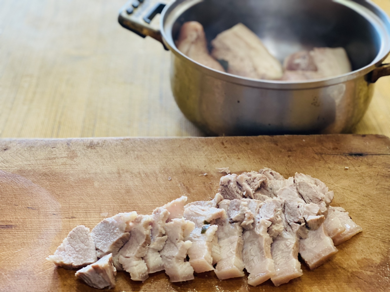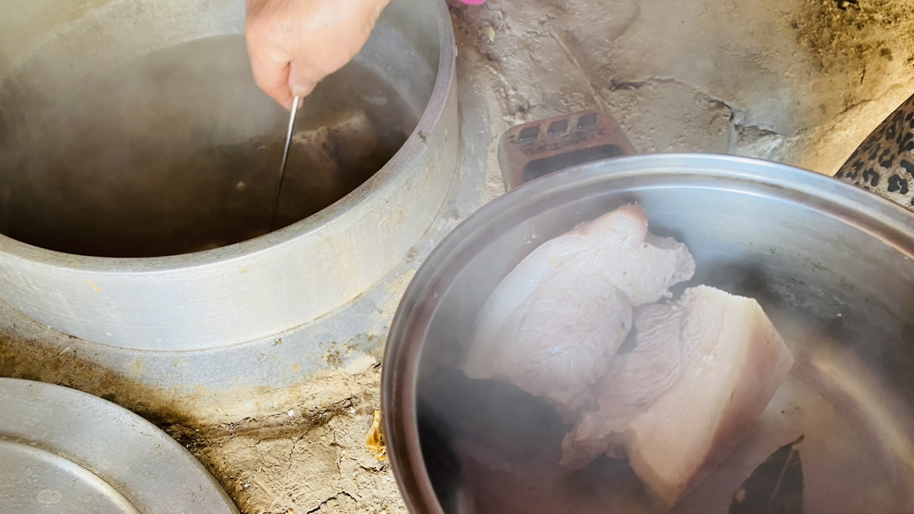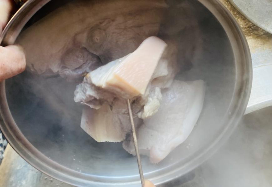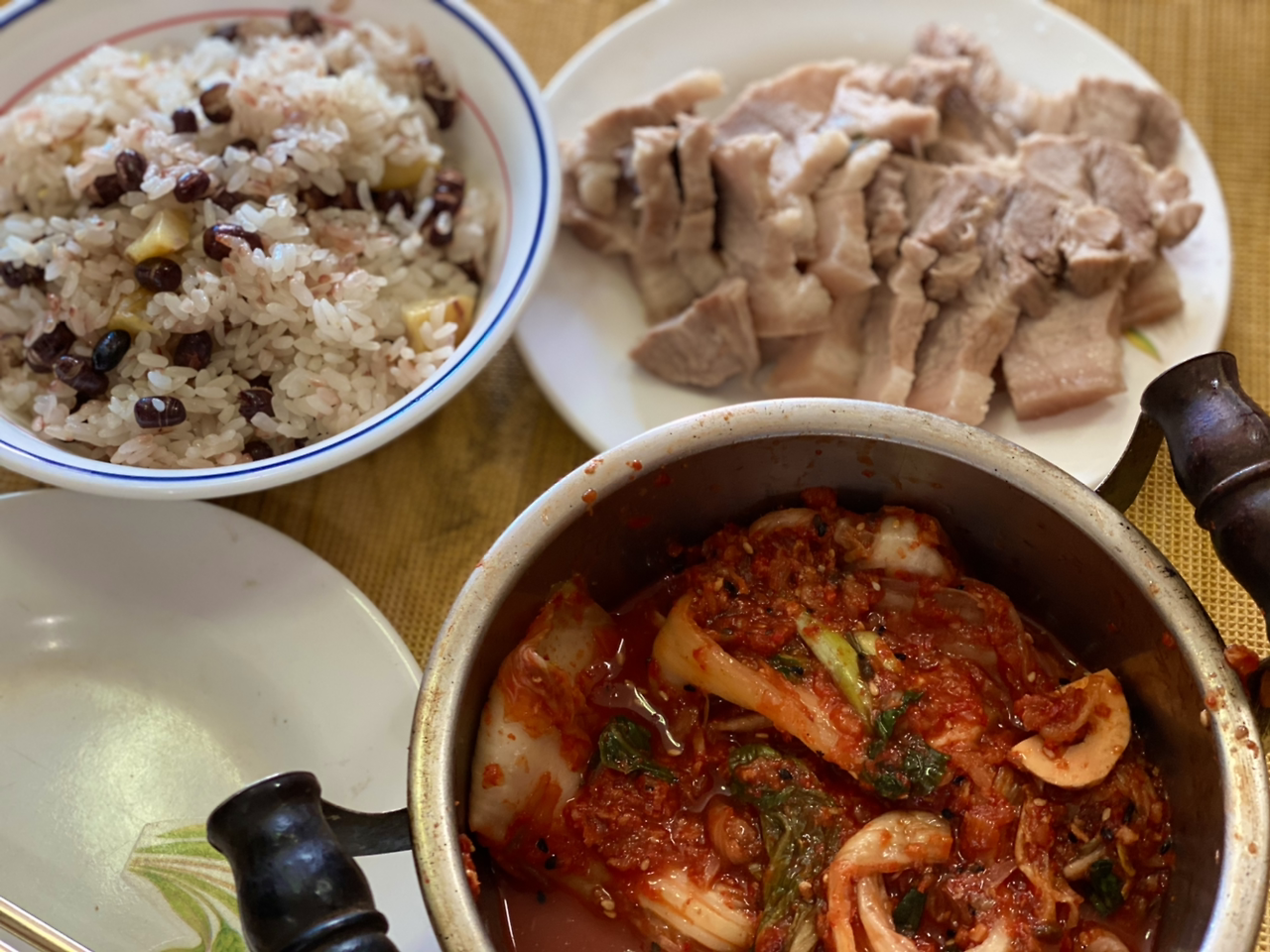 군불 지펴 만든 찰밥과 편육이다.