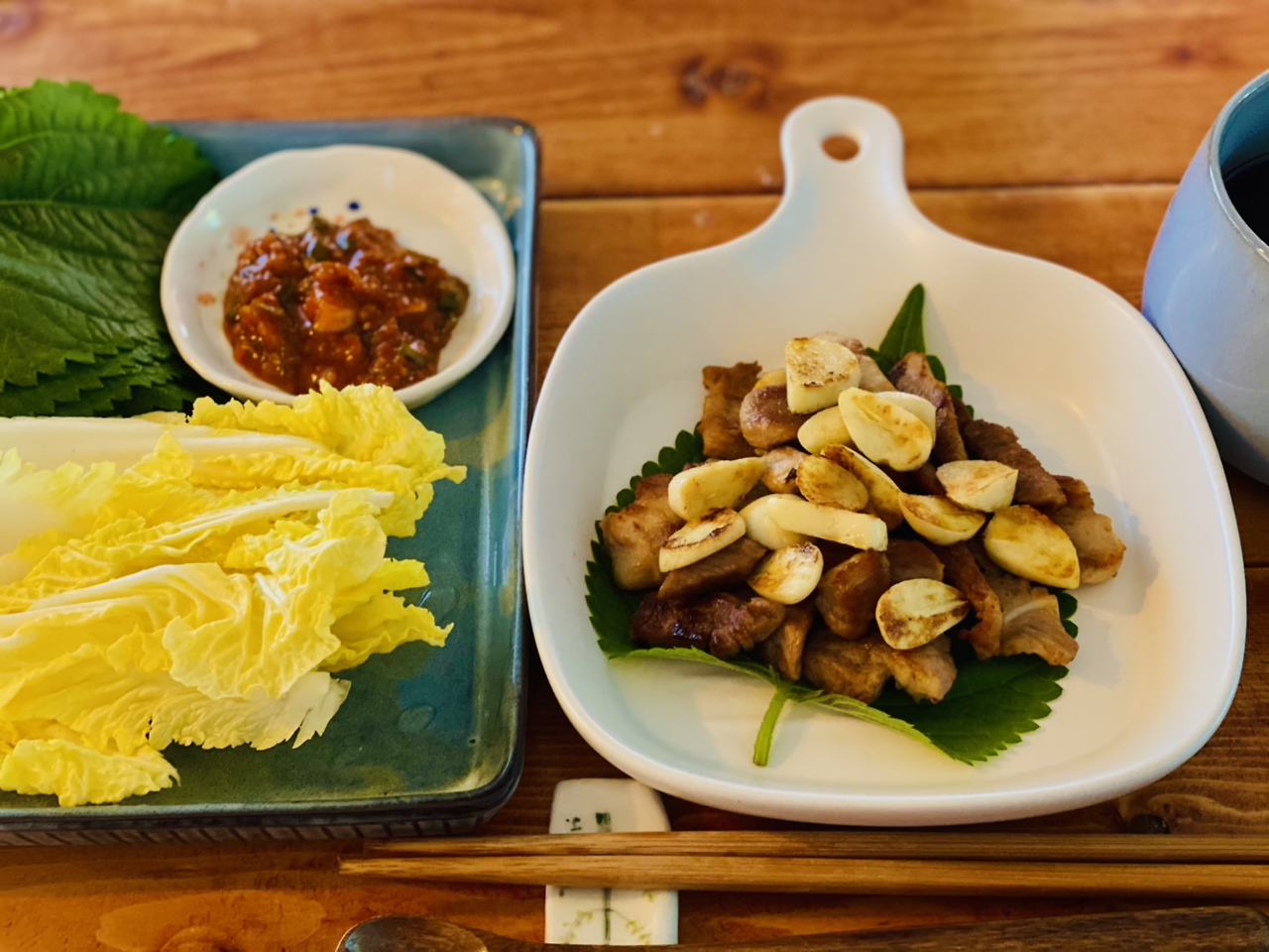평소 단짠 스타일인 갈비찜보다는 담백한 고기 상태로 먹는 삼겹살 소금구이를 선호한다. 삼겹, 오겹보다는 목삼겹을 좋아한다. 기름기가 적고 살코기 중심이기 때문이다. 제육볶음이라기보다 '삼겹살 마늘 구이'이라고 생각하면 되겠다.