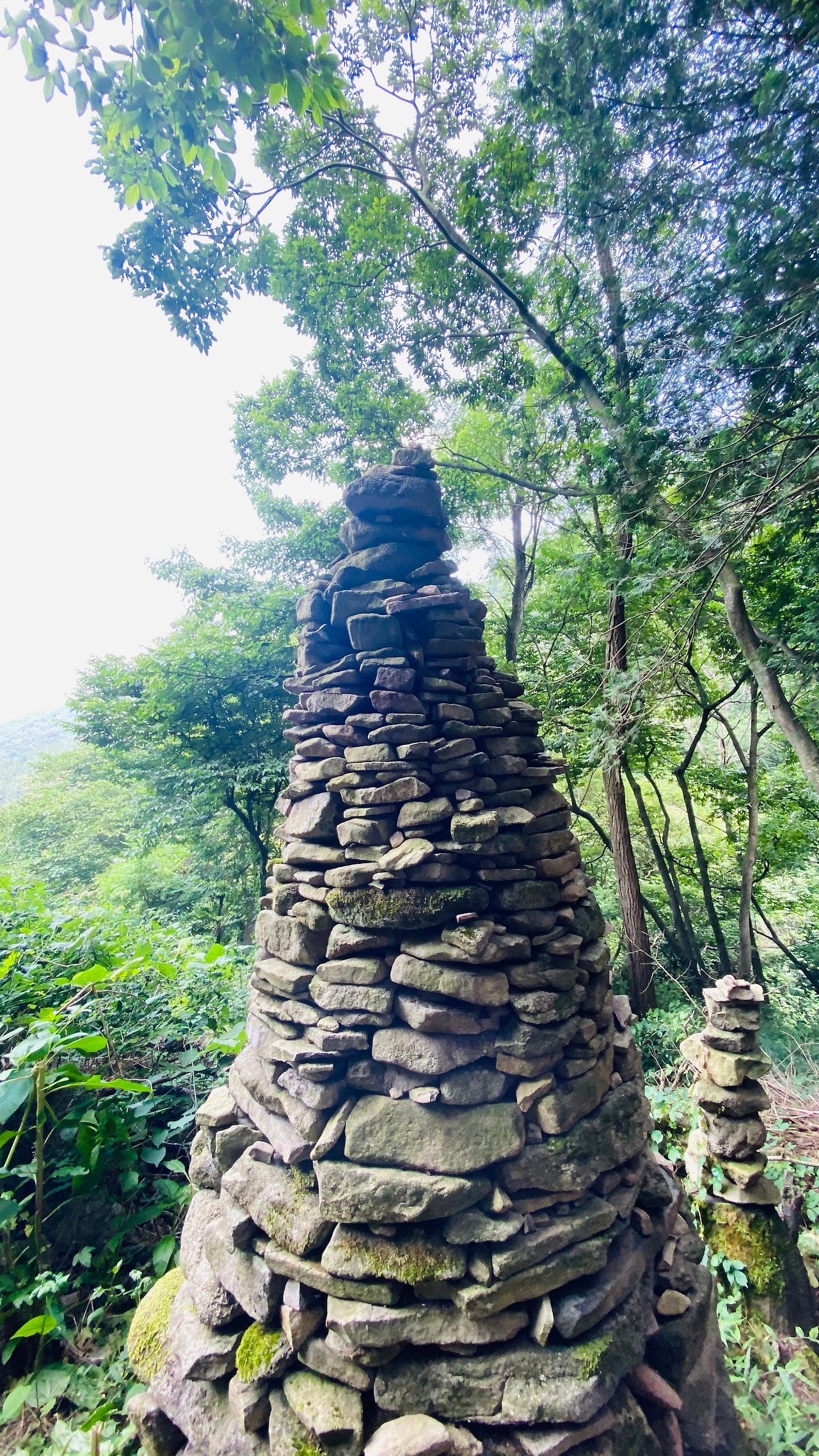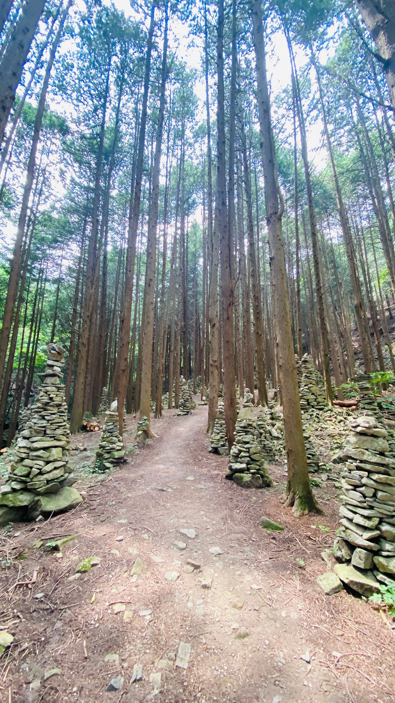 편백나무 숲을 따라 돌무더기들이 솟아있다.