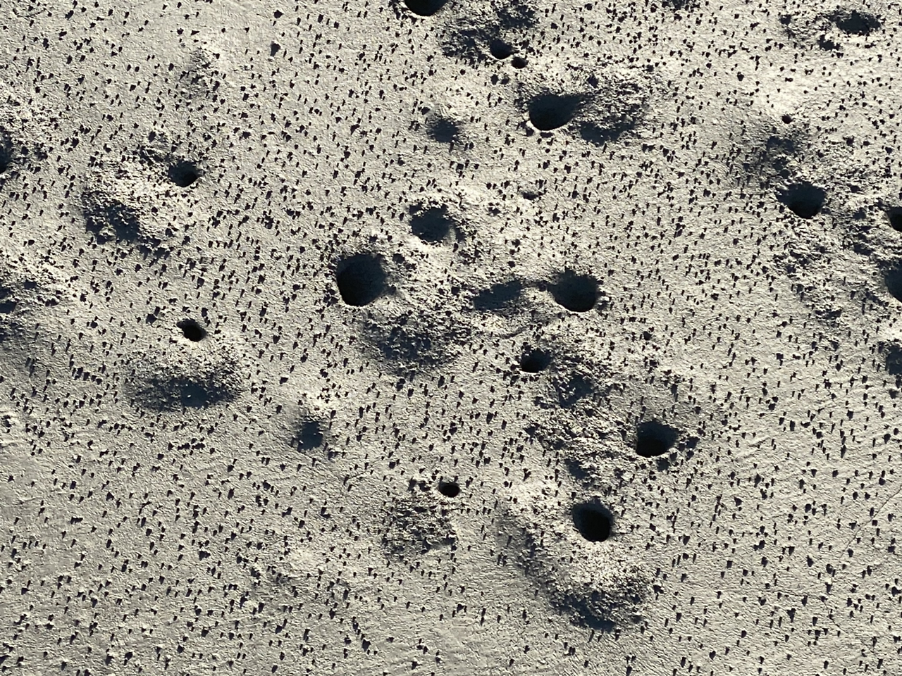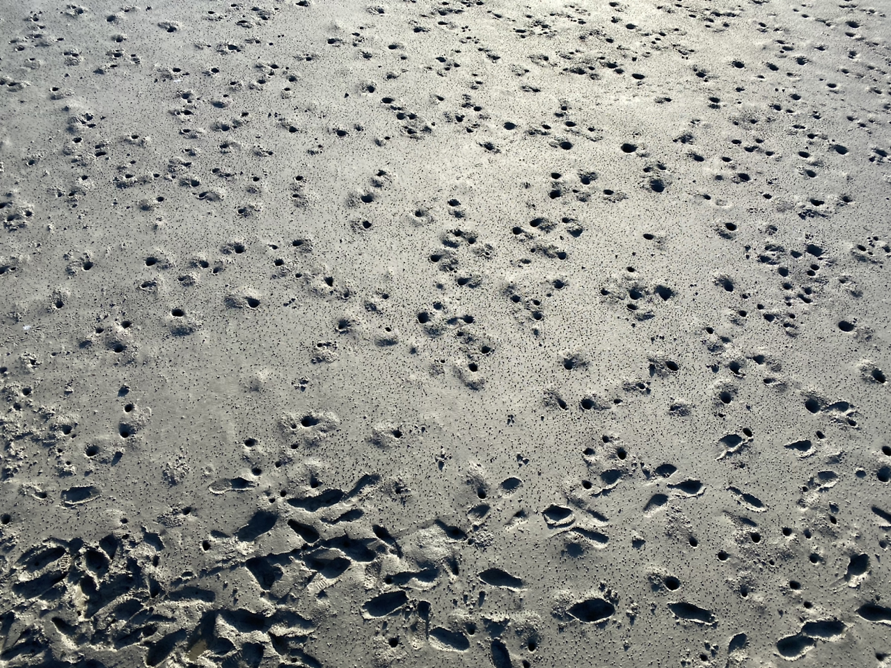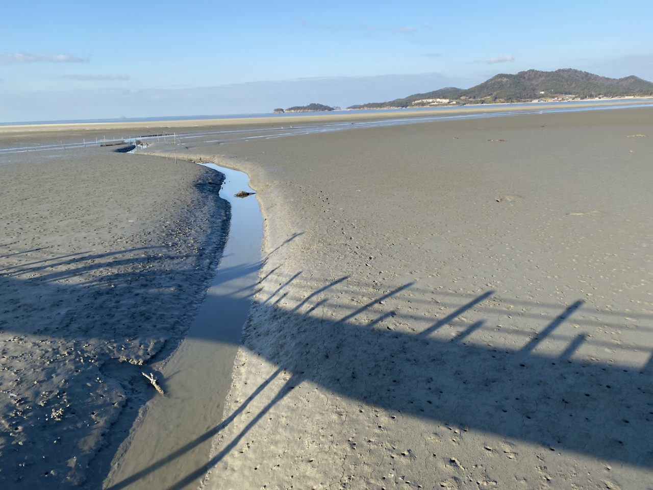 이 구멍 따라 들어가면 짱뚱어들이 잠자고 있을까. 바닷물이 빠지면서 길을 남겼다.