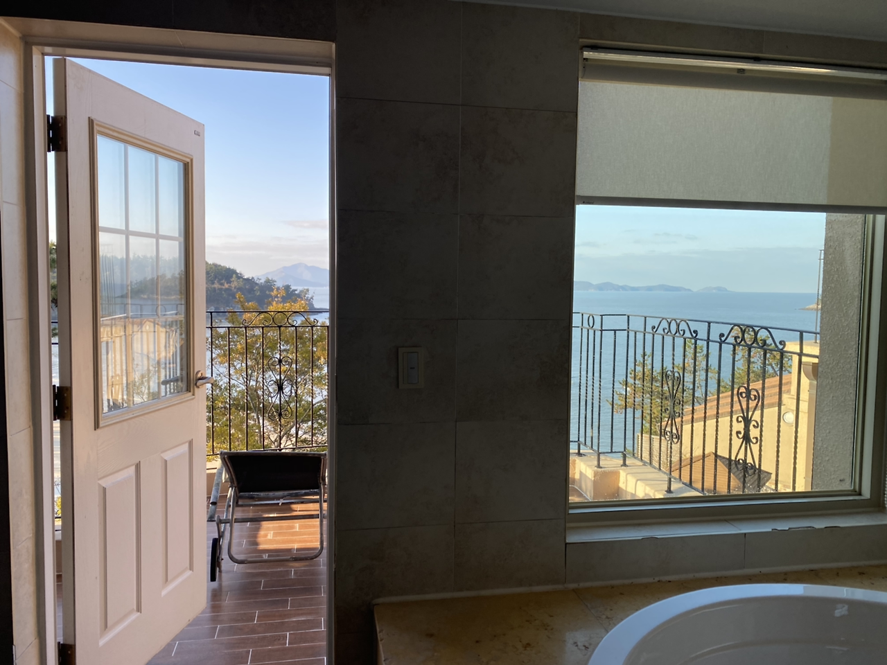 숙소 엘도라도에서 바라본 전경이다. 동료와 와도 좋지만 가족끼리 오면 더 좋을 것 같은 욕실 분위기다.