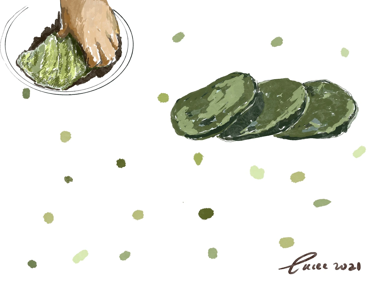 양력 6월은 음력 5월에 해당한다. 단오는 음력 5월 5일로 초여름을 의미한다. 절식으로 수리취떡이 있다. 수레바퀴 모양으로 찍어낸 쑥절편이다. 절편은 치는 떡을 말한다. 쑥을 맵쌀과 소금 조금, 그리고 물을 조금씩 넣어가며 섞어서 매우 치댄다. 치댄 후 동글 납작하게 빚어 찐 이 떡을 우리는 쑥개떡이라 했다.