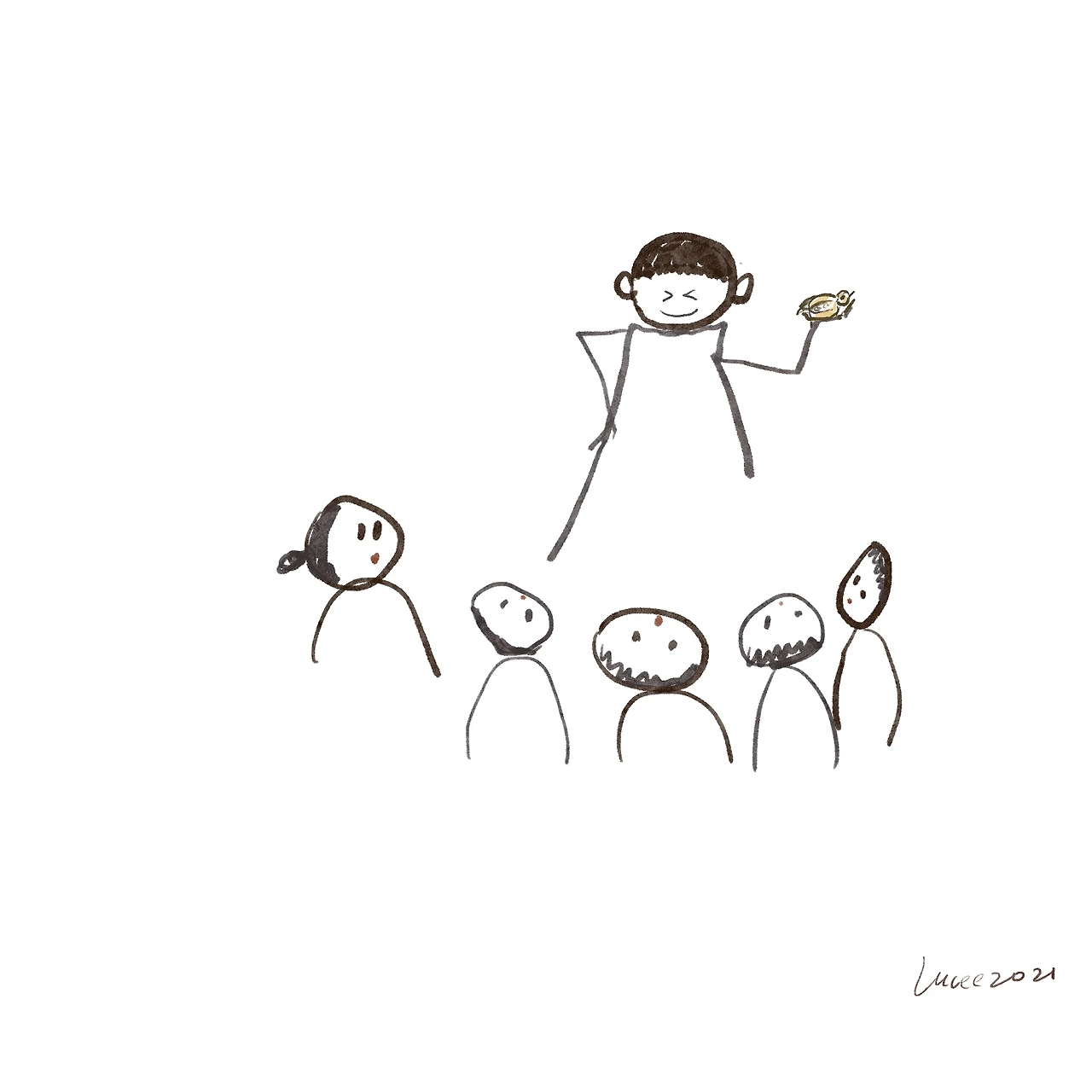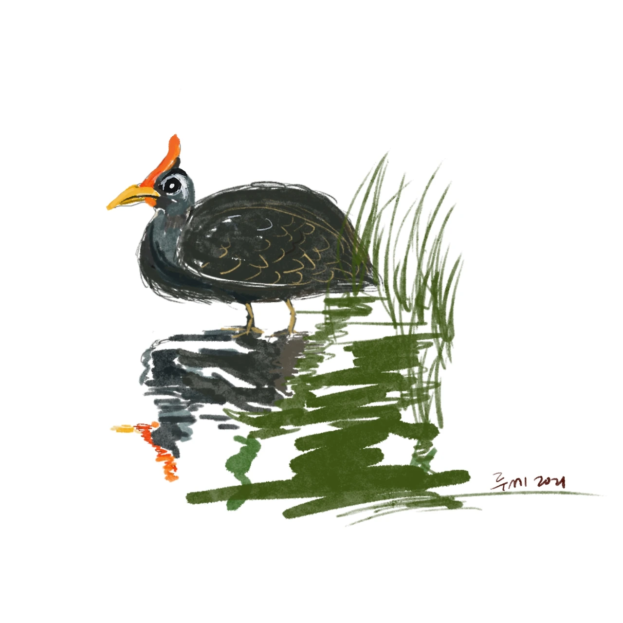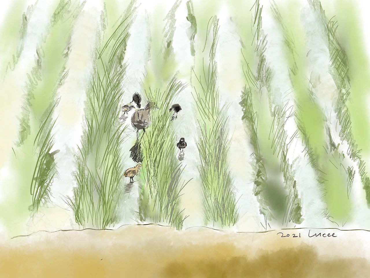 아기새를 가진 그 아이는 어깨가 위로 솟고 고개는 우쭐해서 우리를 바라보았다. 그 후로 걸어서 등 하교를 할 때면 벼들 사이를 눈으로 샅샅이 훑으면서 다녔다. 그러나 운이 없던 내게는 단 한차례도 보이지 않았다. 그 새는 바로 노래 "뜸~북 뜸~북 뜸~북새"에 나오는 뜸부기였음을 후에 알게 되었다. 엄마 뜸부기와 아기새 들이었다. 불쌍한 뜸부기가 내 눈에 띄지 않아서 나에게 나쁜 업보를 남기지 않아 다행이다.