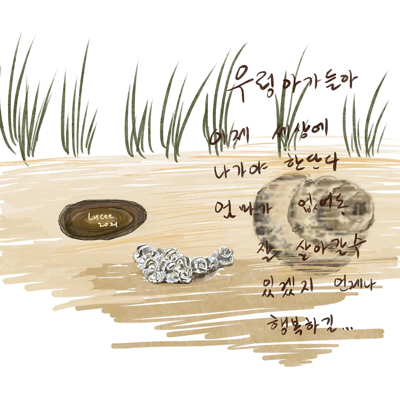 그런데 어느 날 보니까 우렁이 껍데기만 둥둥 떠 다녔다. 아기 우렁이들은 많이 보였다. 그때는 별반 신경을 쓰지 않았다. 어른이 되어 알게 된 우렁이 이야기는 가히 충격적이었다. 우렁은 알을 몸 안에서 키우고 알들은 엄마 살을 파 먹으며 자란다고 한다. 결국 아기 우렁이들이 다 자라면 그 아기 우렁이들을 모두 세상에 내놓고 엄마 우렁은 죽는다. 그러니까 그때 둥둥 떠 다닌 빈 껍질은 엄마 우렁이었다.