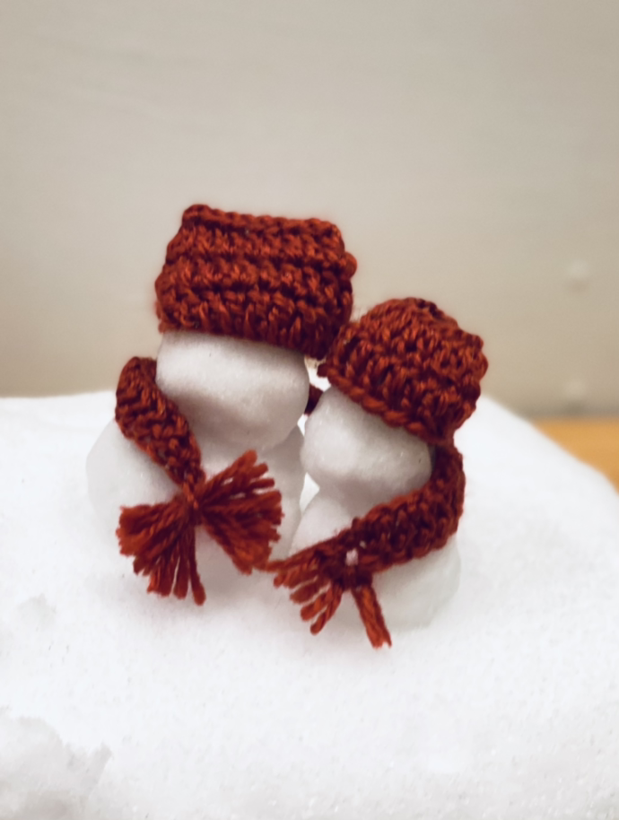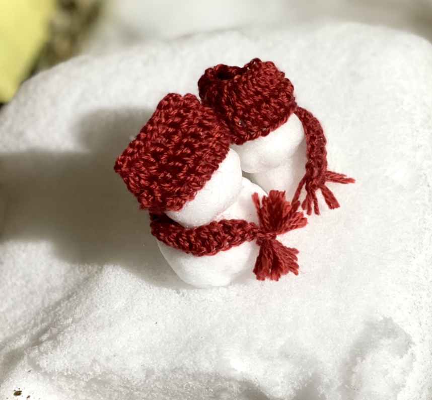 미니어처 눈사람을 만들고, 모자와 목도리를 만들어 줍니다. 친구들에게 사진을 보내니 눈코 입이 없다 합니다.