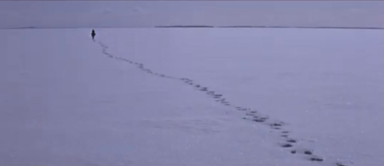 하나는 포로가 된 주인공이 끝도 없이 펼쳐진 눈길을 걸으며 남긴 발자국이다.
