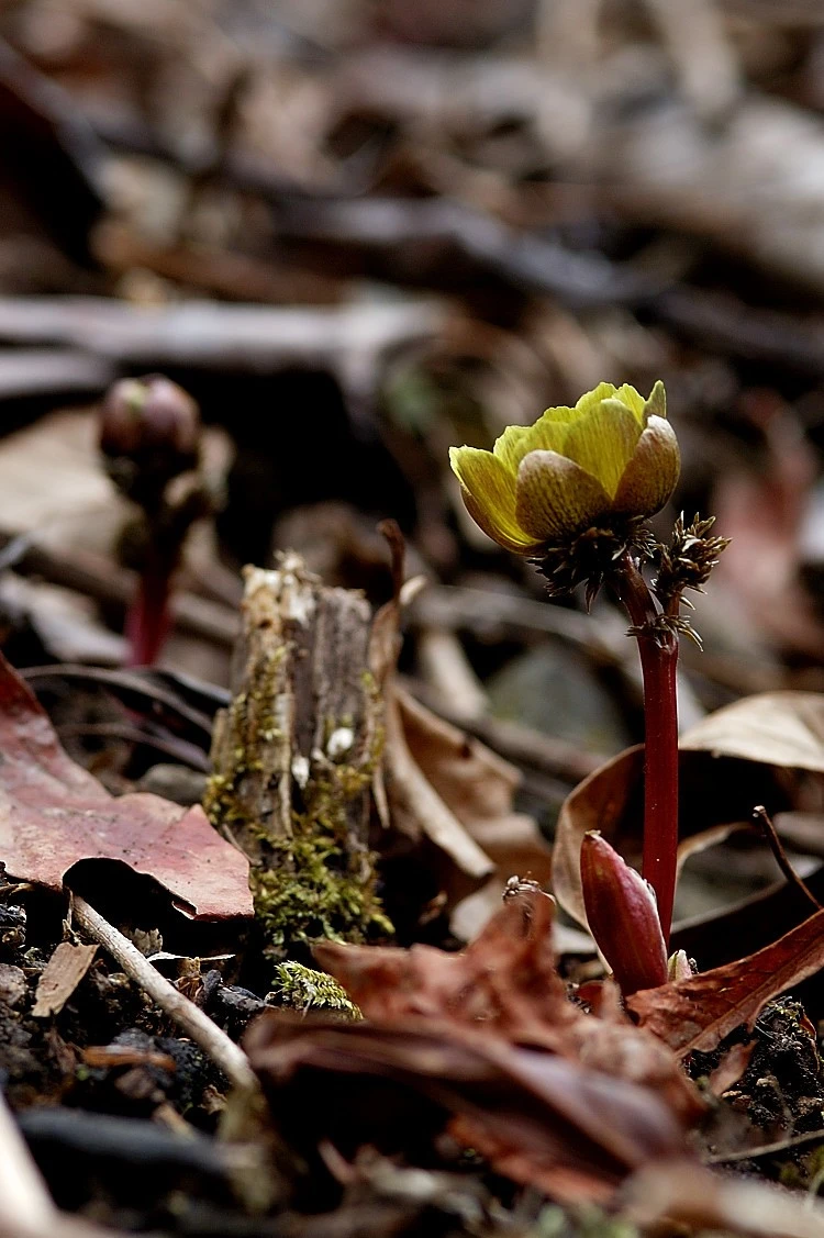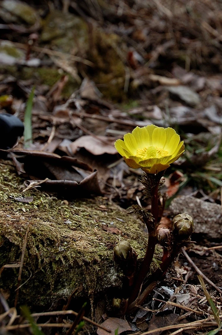 봄의 전령사인 '복수초'는 야생에서 봄에 가장 먼저 피는 꽃이다. 군락으로 피어나는 데 농막 근처에 핀 꽃을 찍은 것이다.