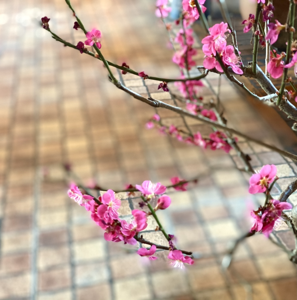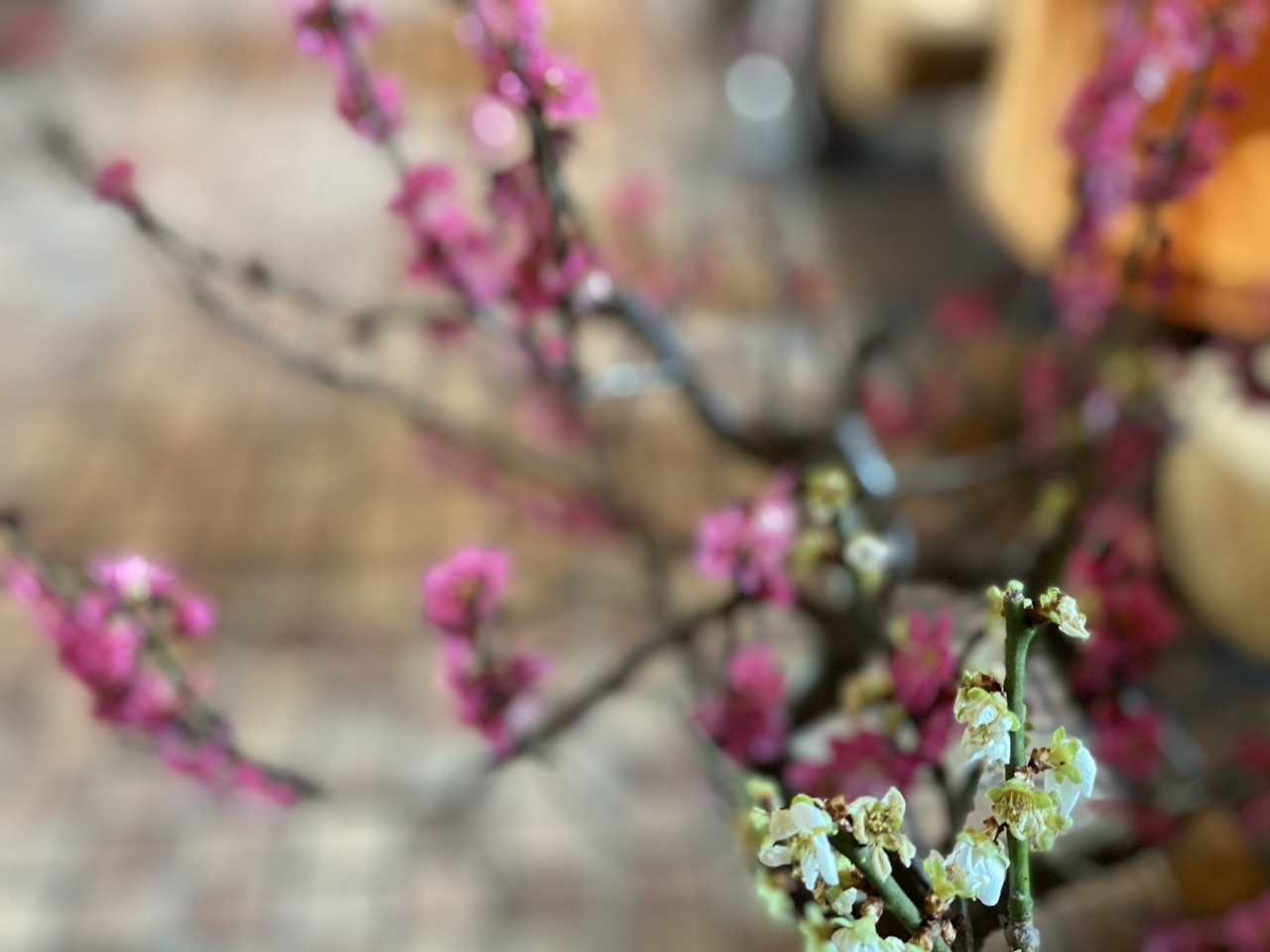 실내에 있는 매화 화분의 꽃이 진짜인지 가까이에서 봤다. 백매화는 어느 사이 피어났다가 지고 홍매화가 반긴다.