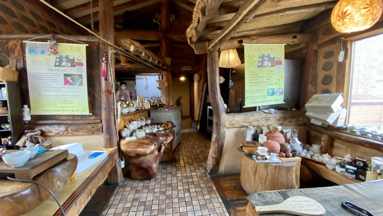 내부에 들어서자마자 강한 쌍화차의 냄새, 마스크를 쓰고 있음에도 아주 진하다. 황토로 지은 집이다. 그냥 앉아 있기만 해도 무슨 건강원에 들어온 느낌이다.