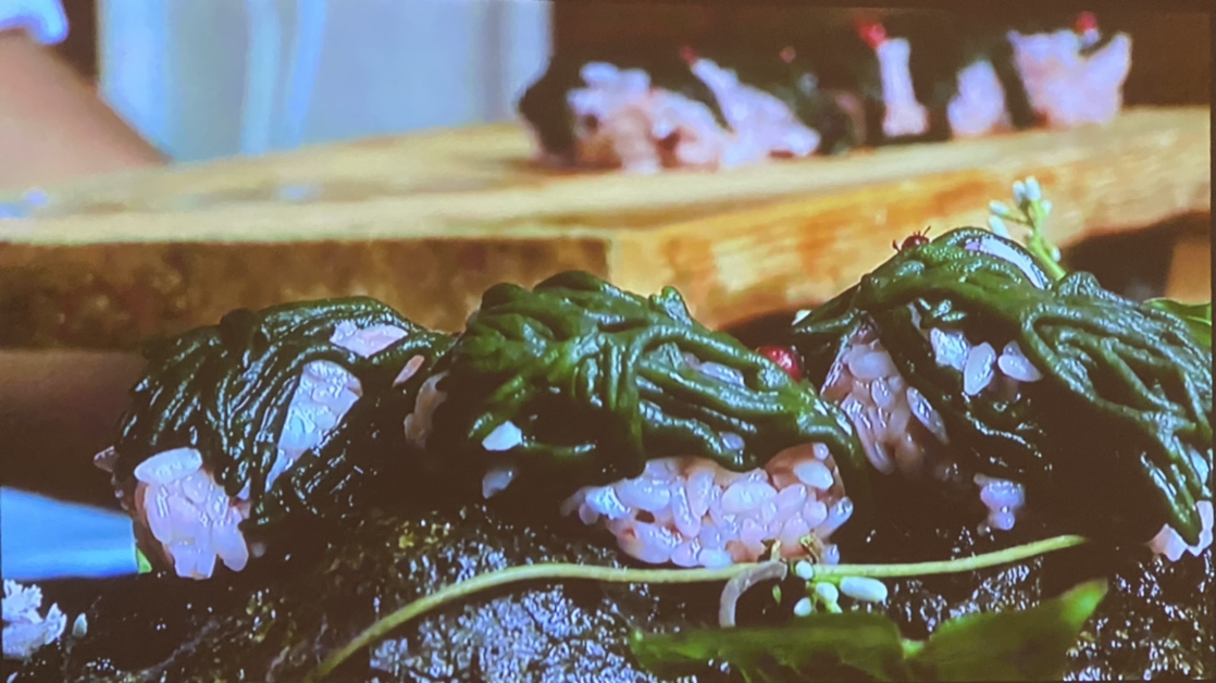 초반에 80세 해녀 여자 사람의 모습이 나온다. 임지호 선생님은 그녀의 등짐을 지어주고 선물로 받은 청각으로 초밥을 만든다.