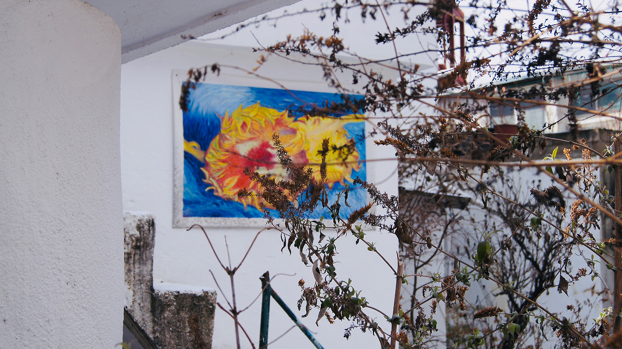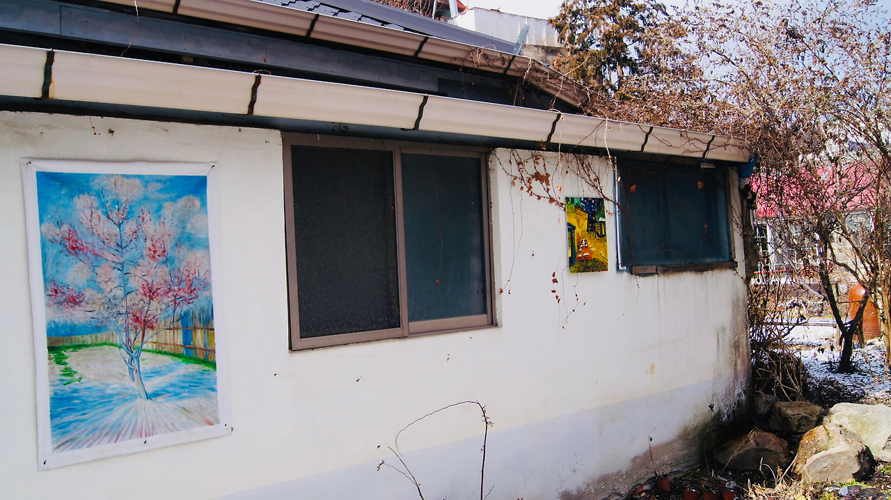 건물의 벽에 명화 그림들을 걸어 놓아서 운치가 있다. 봄에 왔을 때 본 꽃들이다.