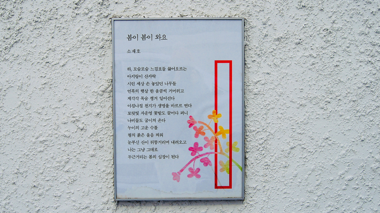 골목길 담에 있는 시가 눈길을 끈다. 천사의 거리 골목길을 걸으며 벽에 걸린 시를 하나하나 읽어 본다. 시인들은 참으로 특별한 마음을 지닌 듯하다. 시를 읽다 보면 응어리 진 마음이 녹아버린다. 왈칵 눈물이 난다.