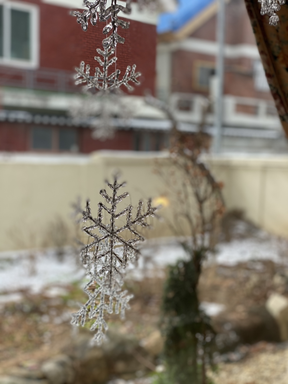 하늘을 올려다보니 아침에 내리던 눈이 멎고 해님이 나왔다. 시야를 어지럽히는 전깃줄이며 지저분한 건물들이 사라지고, 맑은 바다와 같은 파란 하늘이 뭉게구름과 함께 떠 다닌다. 컴퓨터만 봐서 아픈 눈이 깨끗이 낫는 기분이다.