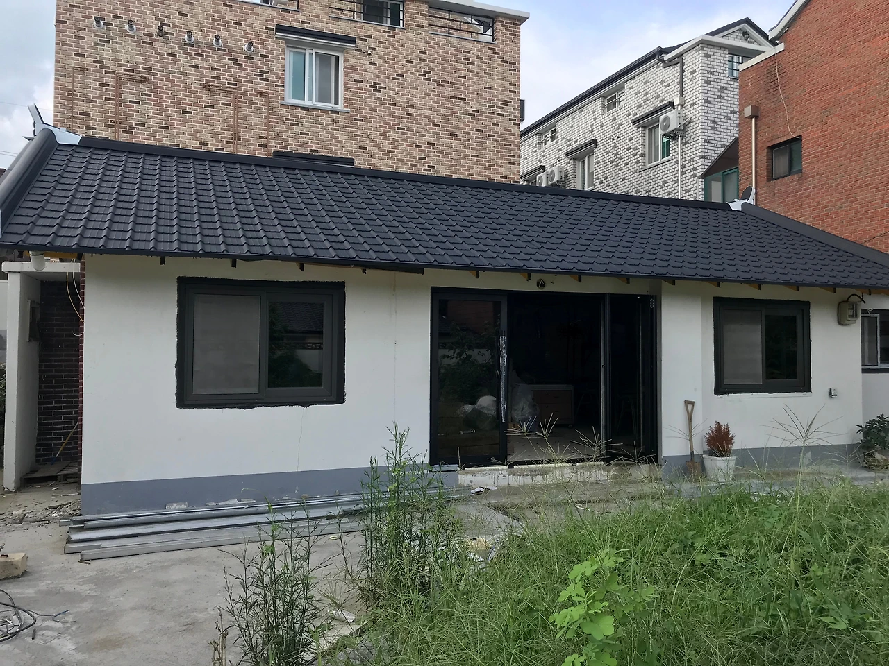 기존 건물(60년 된 시멘트 블록조)의 골조를 튼튼히 보강한 후 공방으로 사용하다 팔기.
