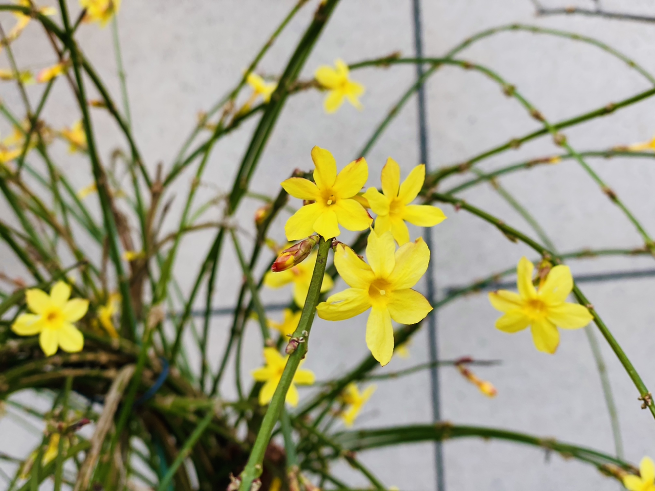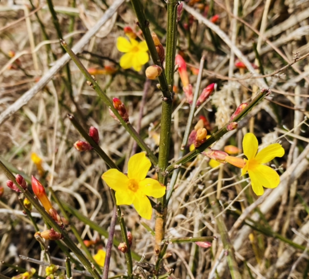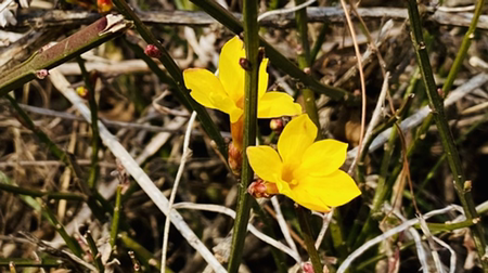 검색해 보니, 영춘화가 맞다. 꽃말은 희망이라고 한다.