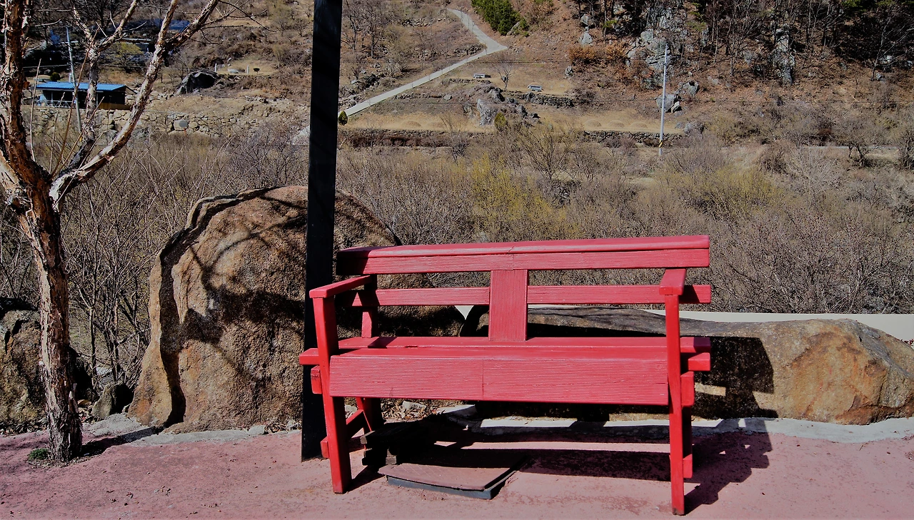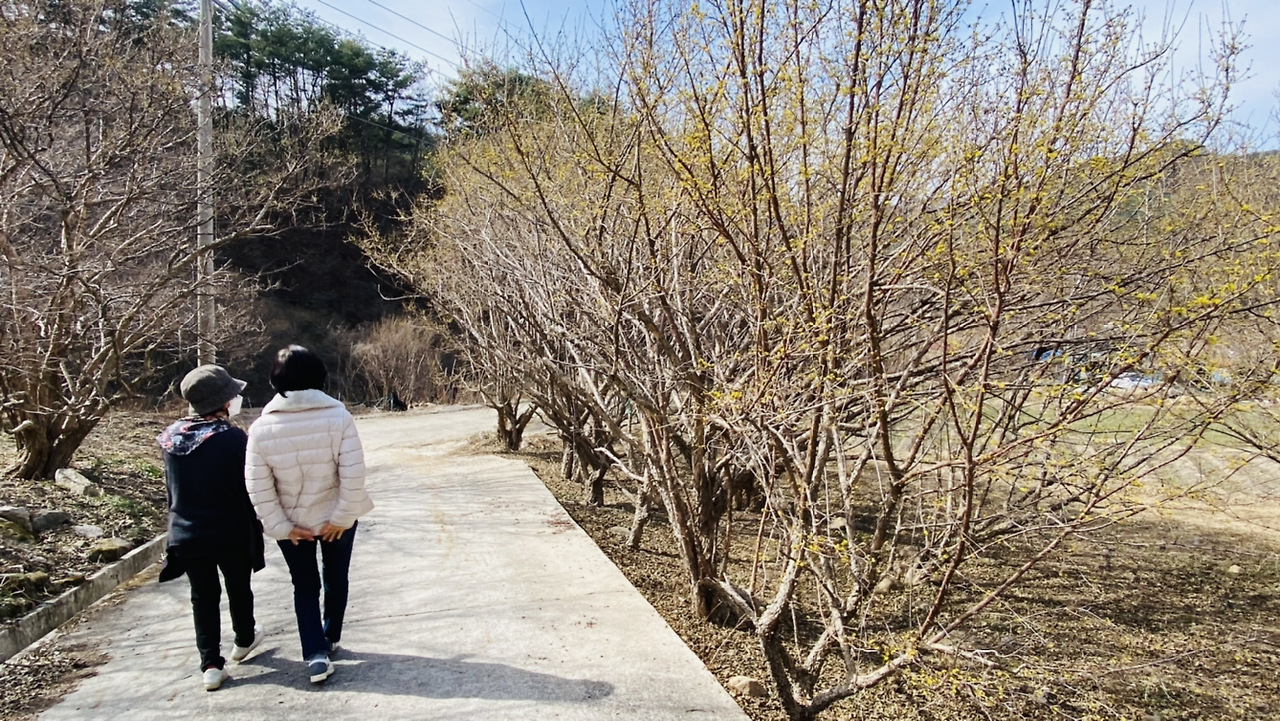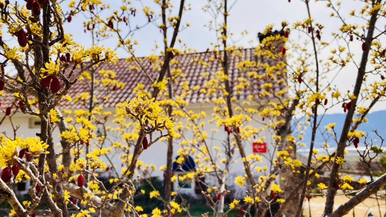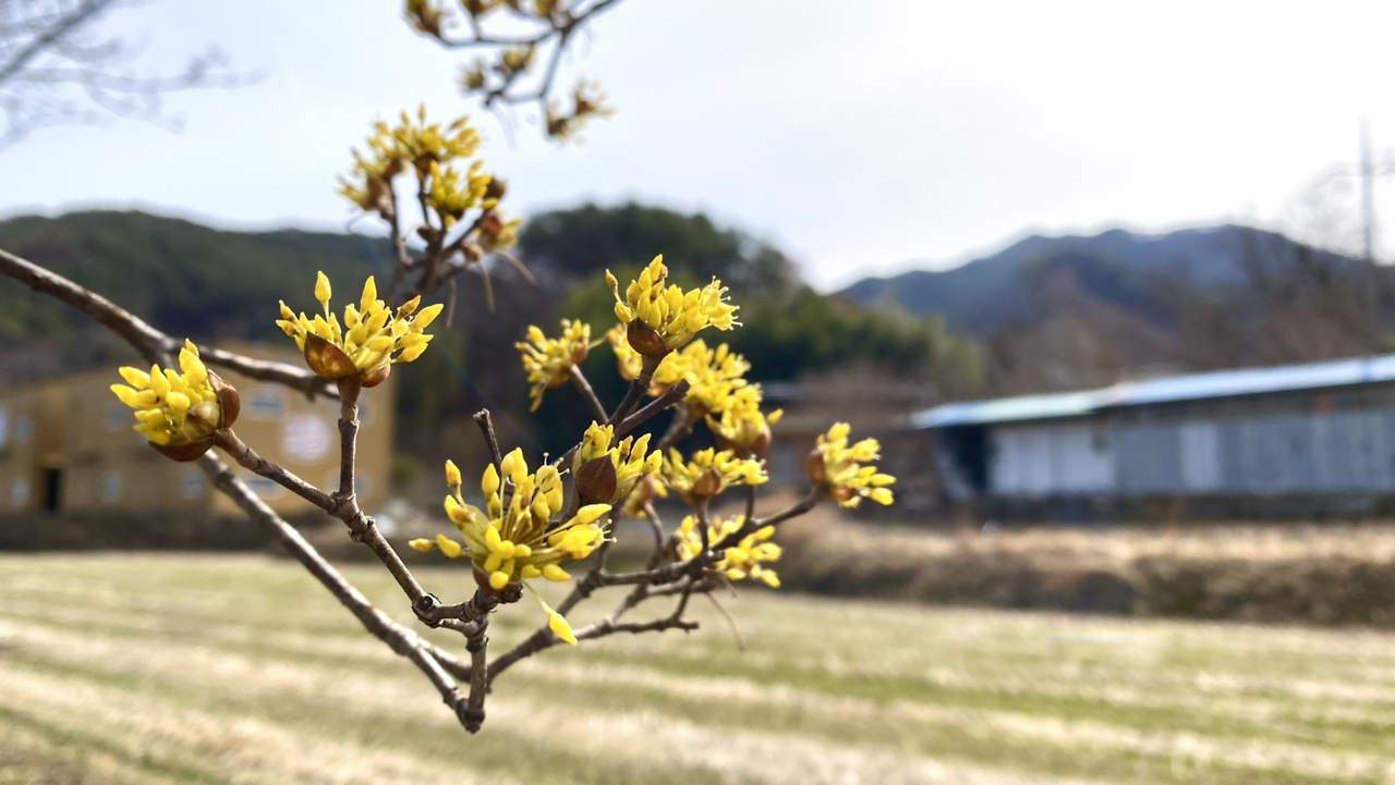 "저기 위에 산수유 마을 보이네. 그런데 아마 여기가 더 핀 걸 거야. 마을 쪽은 안 피었을걸? 원래 2주 후쯤 와야 만개할 거야. 그럴 것 같더라. 지금 개화시기가 아니야~. 3월 20일 이후에 한창이어서 그때 산수유 축제를 한대. 그런데 올 해는 안 한단다. 코로나 때문에." 운전 중인 제니퍼가 대답한다.