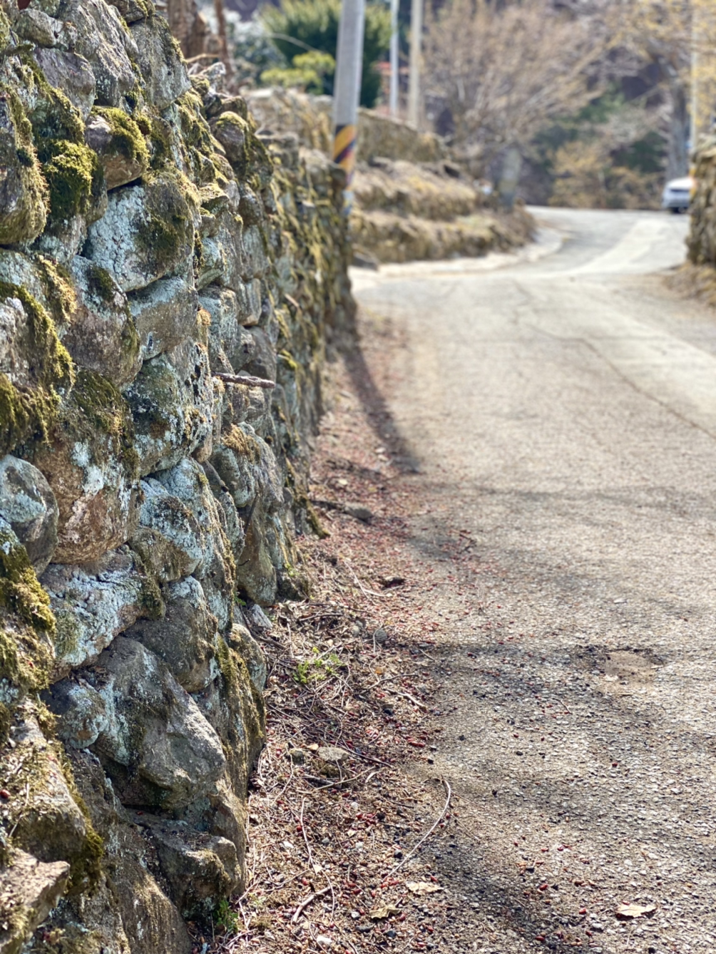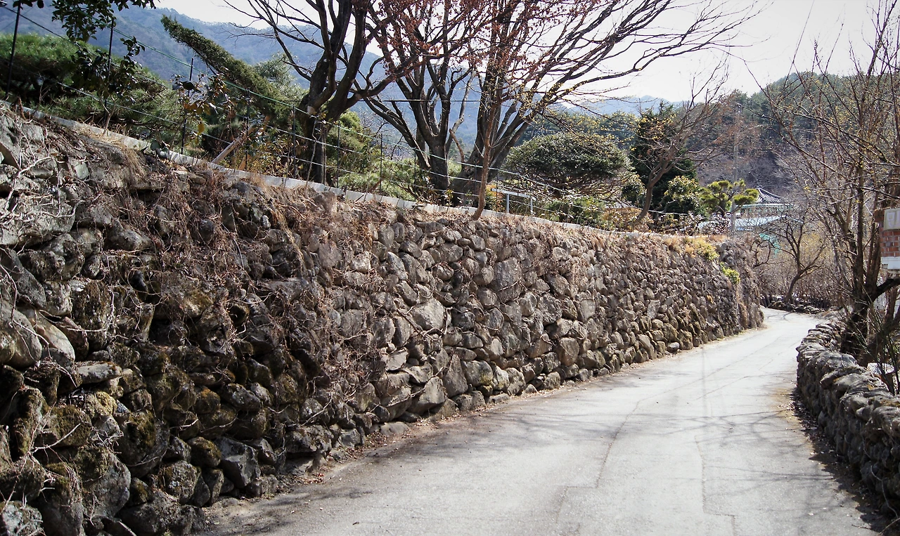 이제 아름다운 이야기로 돌아가기로 한다. 마을의 돌담은 지난번 산청 돌담길보다도 더욱 정겨운 진정한 자연 돌담의 형태로 남아있다.